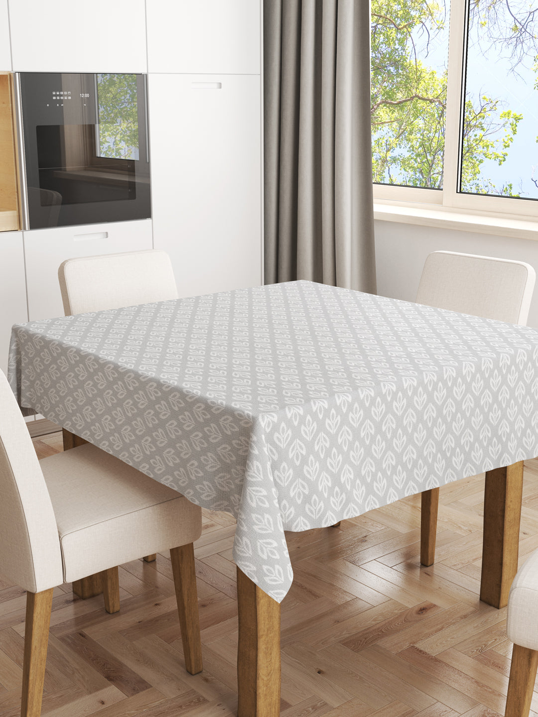 Premium Printed Cotton Dining Table Cloth (floral-lt.grey)