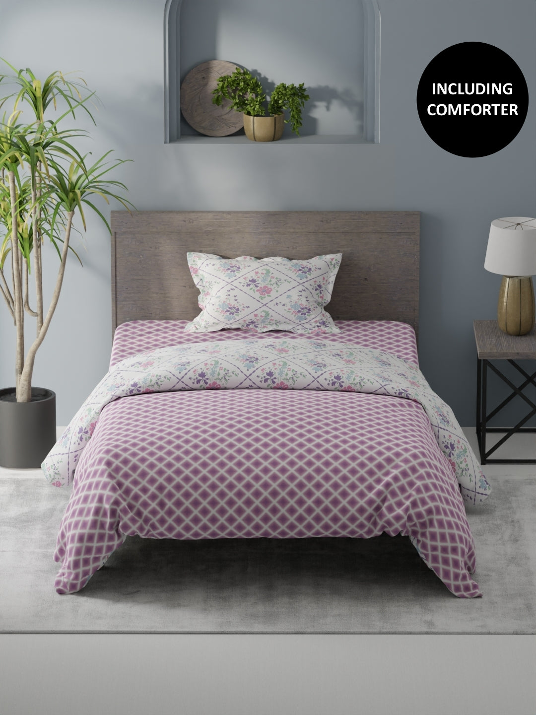 this king size bed-in-bag set comes with one double comforter, one double bedsheet and two pillow cover. it features a heavy-duty micro fabric for pleasant sleep. the comforter is filled with silken-micro fiber, and is suited for a.c. room. the fabric has special cotton-feel soft finish. it is easily machine washable.
