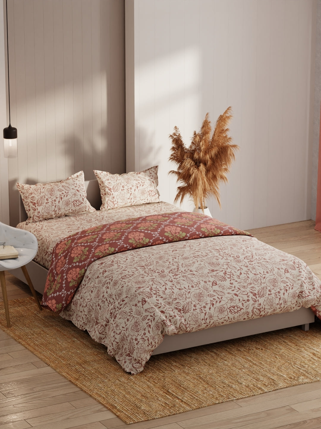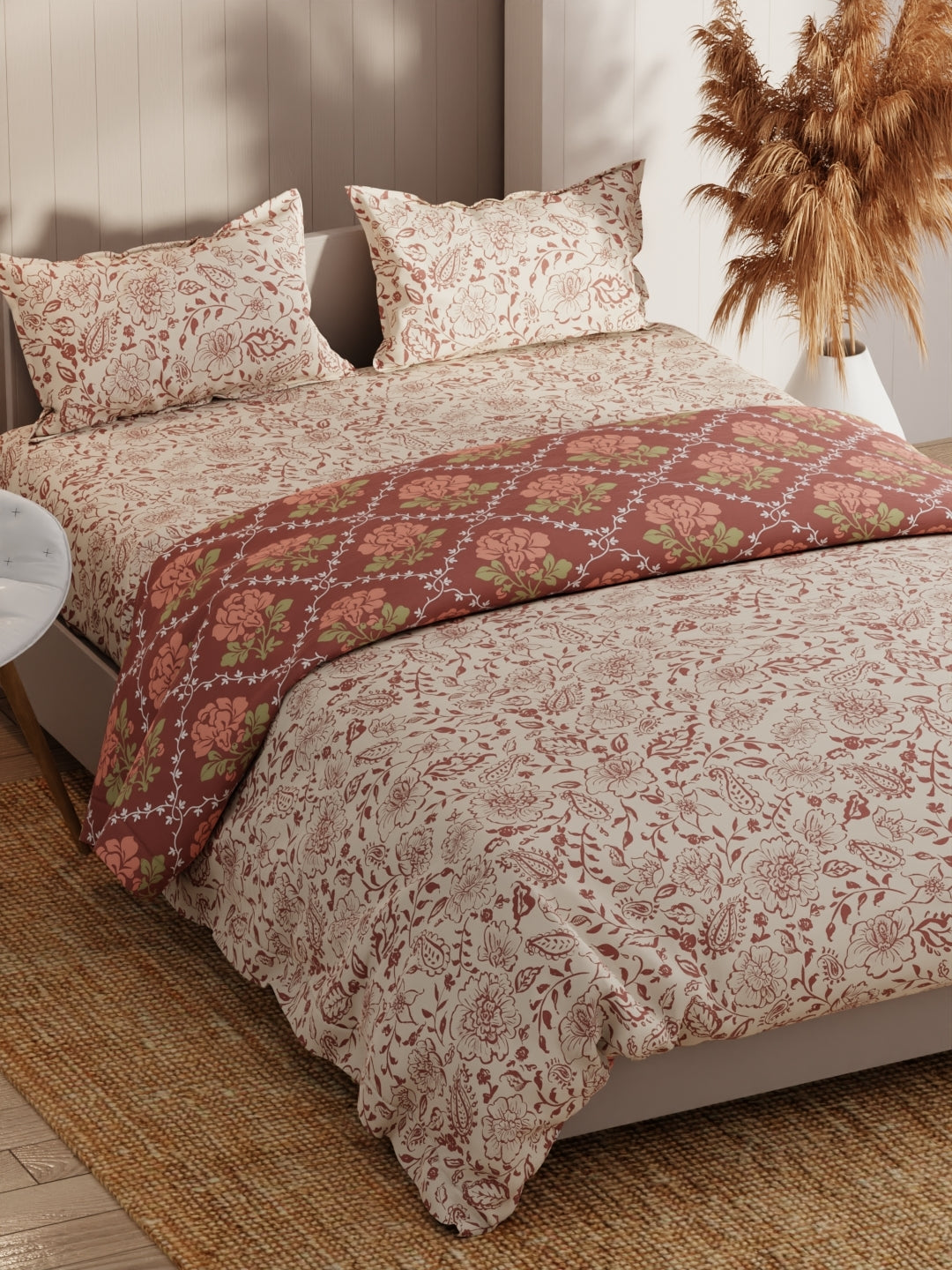 Extra Smooth King Size Bed-In-Bag Set For Ac Room (floral-beige/brown)