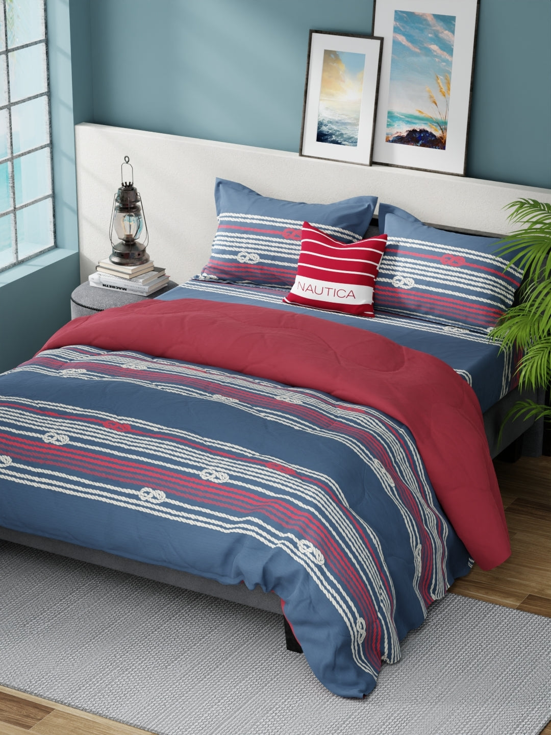 Nautica Bradford Bedding: Our premium 100% cotton comforter offers an exceptional level of comfort, breathability, durability, and style that makes it the perfect choice for anyone looking to upgrade their bedding experience. Made from the finest quality cotton, this comforter is soft, smooth, and luxurious, enveloping you in a cocoon of comfort that promotes restful sleep and rejuvenation. The breathability of the fabric ensures that you stay cool and comfortable throughout the night, while the durability ensures that you can enjoy the benefits of this comforter for many nights to come. With a variety of stylish design options to choose from, you can easily find a comforter that enhances the look of your bedroom and complements your personal style.