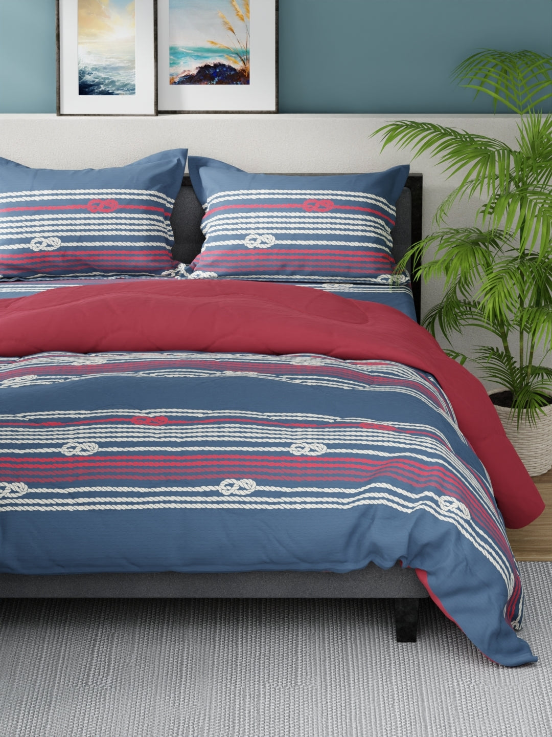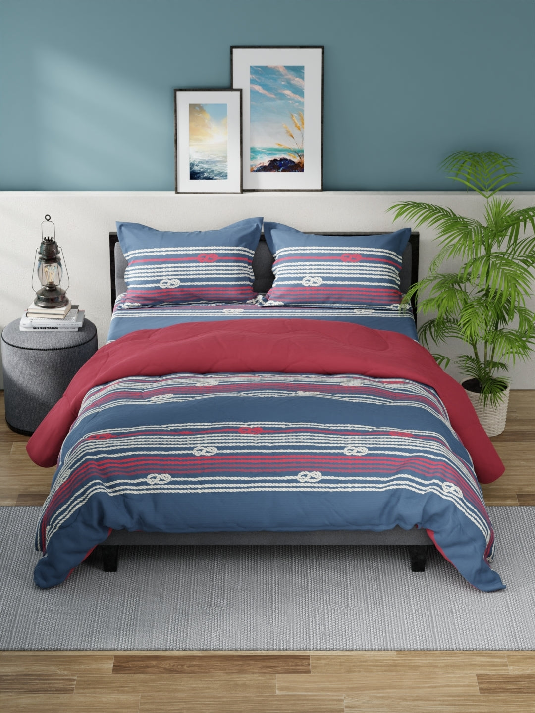 Super Soft 100% Cotton Bed-In-Bag Set For All Weather (ornamental-red/blue)