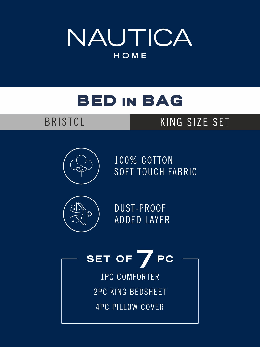 nautica bristol bed n bag are trend setters and can transform your space completely. these fashionable comforter set is made with aloe vera gel fiber filling of 130 gsm making it temperature controlled as per your body temprature. high thread count 150tc 100% premium cotton fabric which gives you softest feeling is used in comforter, bedsheet and pillow cover. it has a special dust proof layer which helps to keep you and your loved one safe. these comforters are suitable for use in ac room and in all seasons. it will keep you warm and cozy feeling. it features the quality stitch and beautiful quilted pattern. elegant prints does not fade away even after daily use. this comforter gets softer with every wash. it's machine washable and easy to maintain.