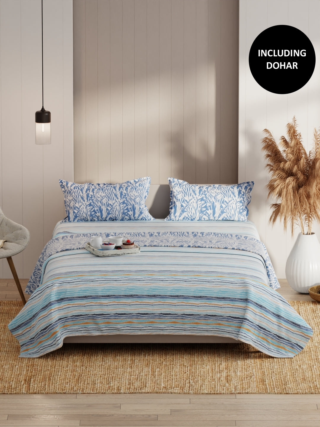 Extra Smooth Double Dohar With 1 Double Bedsheet 2 Pillow Covers, For Ac Room (abstract-blue)