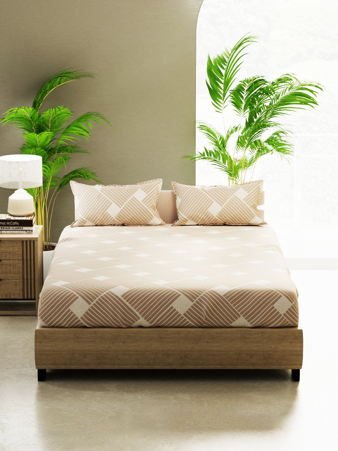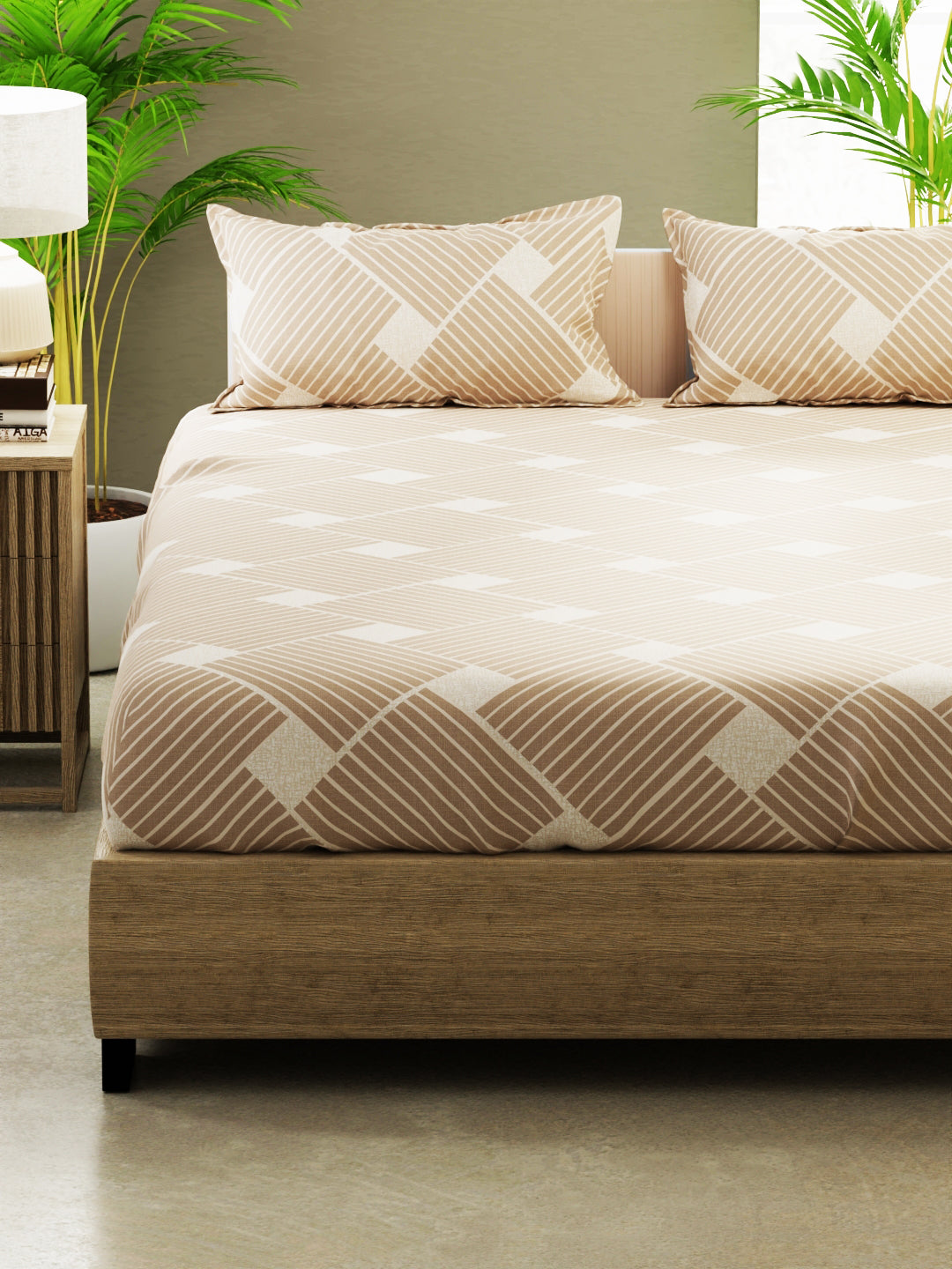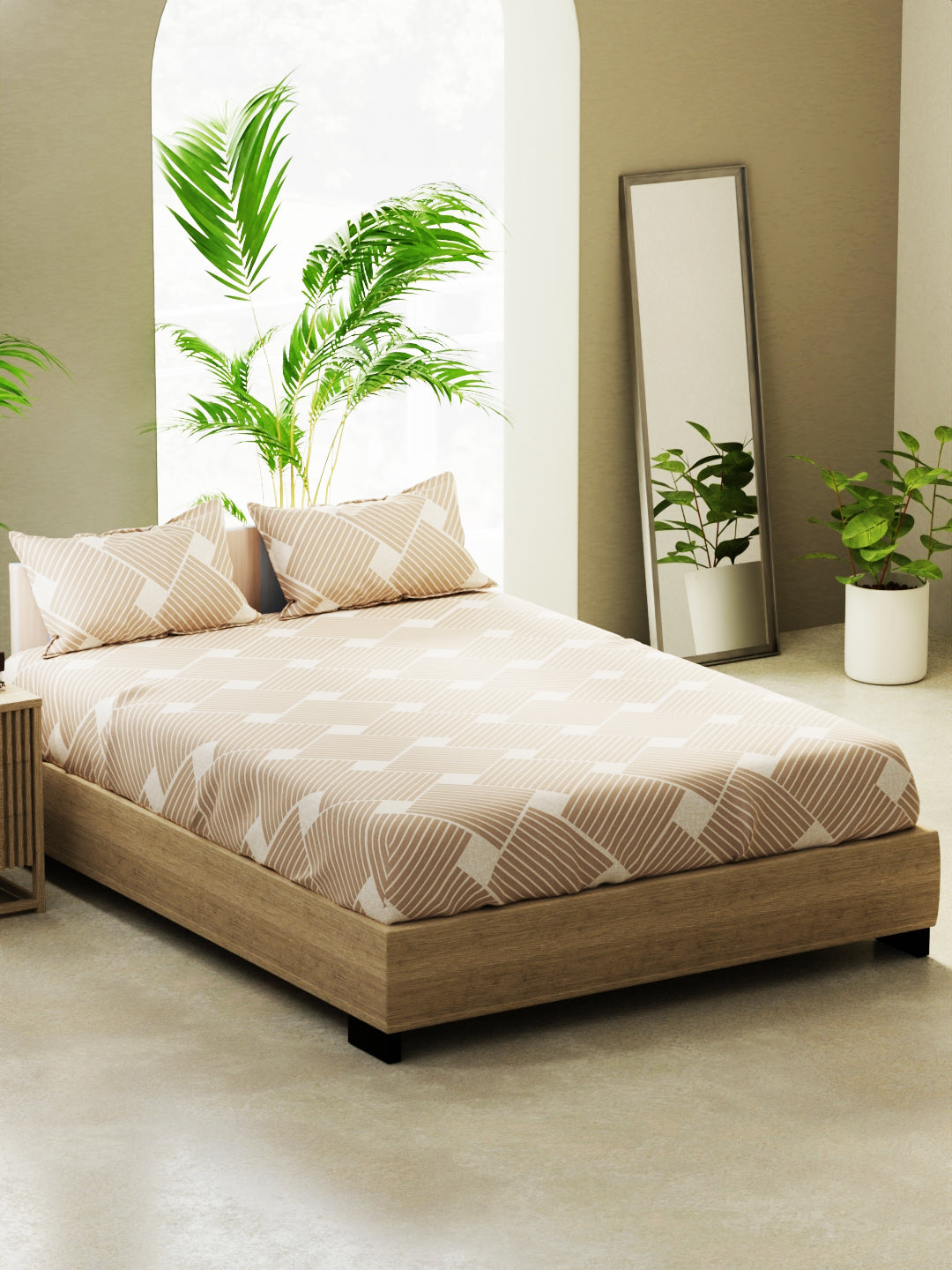 Enhance the beauty of your bedroom interiors with this 100% cotton double bedsheet. It's extremely comfortable and super soft to touch, recommended for delicate skin to avoid any rashes. It will comfortably fit your king-size mattress. It includes two pillow covers, is machine washable, and is easy to maintain.