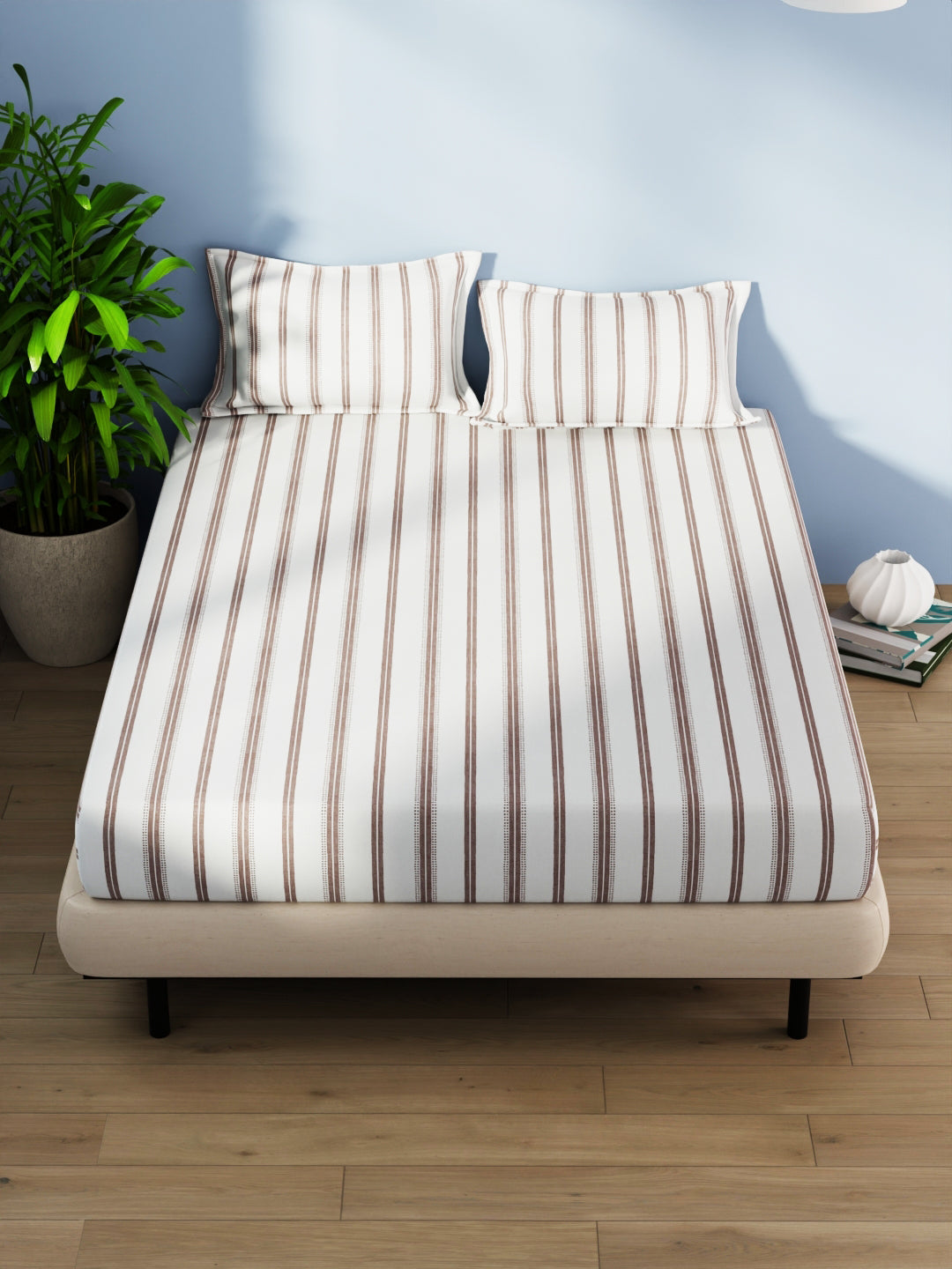 Enhance the beauty of your bedroom interiors with this 144 TC cotton double bedsheet. It's extremely comfortable and super soft to touch, recommended for delicate skin to avoid any rashes. It will comfortably fit your double-size mattress. It includes two pillow covers. machine washable and easy to maintain.