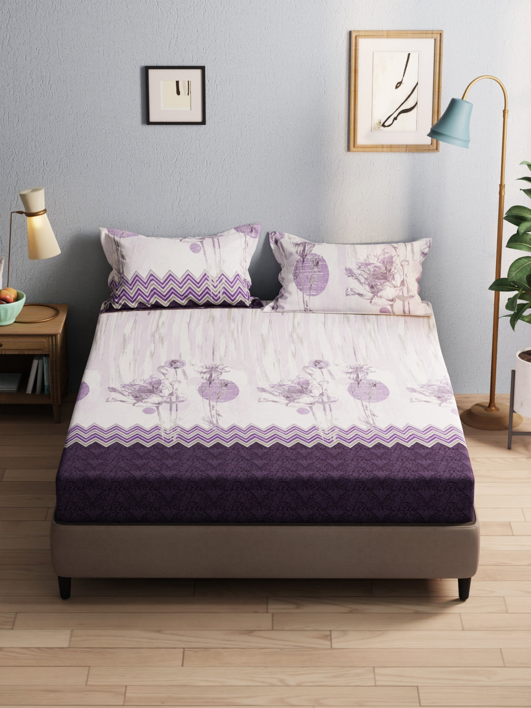 Enhance the beauty of your bedroom interiors with this cotton double bedsheet. It features a super soft and comfortable fabric for pleasant sleep. This set includes 1 pc double bedsheet & 2 pc pillow covers. It is easily machine washable & features an easy-care fabric finish. It is made with premium cotton fabric.