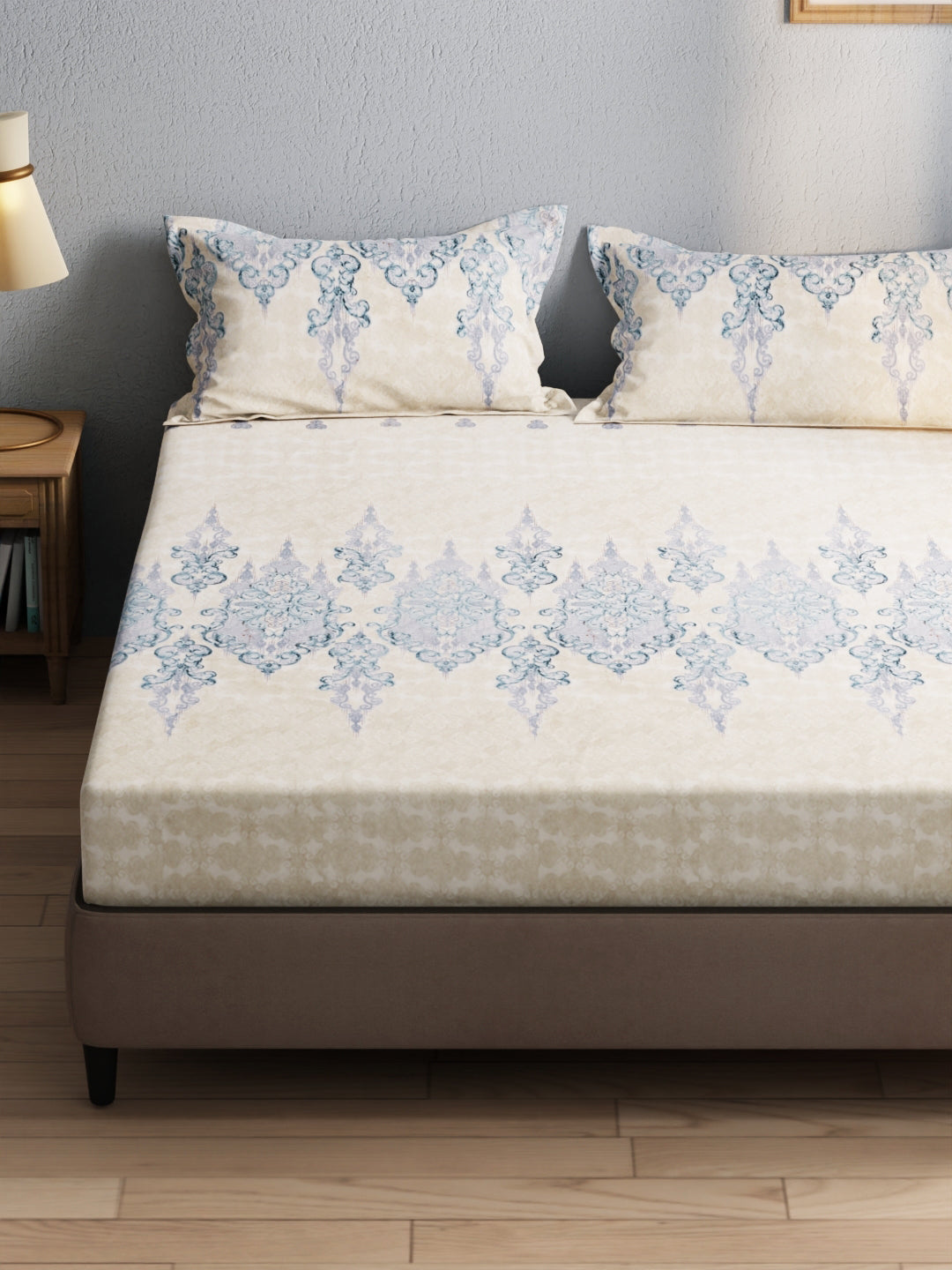 Enhance the beauty of your bedroom interiors with this cotton double bedsheet. It features a super soft and comfortable fabric for pleasant sleep. This set includes 1 pc double bedsheet and 2 pc pillow covers. It is easily machine washable and features an easy-care fabric finish. It is made with premium cotton fabric.