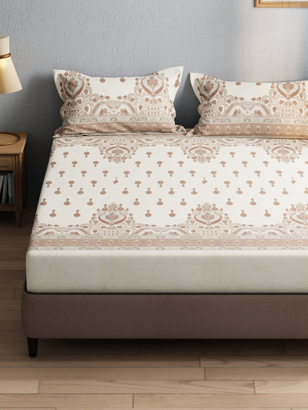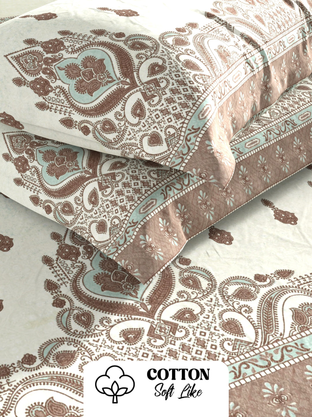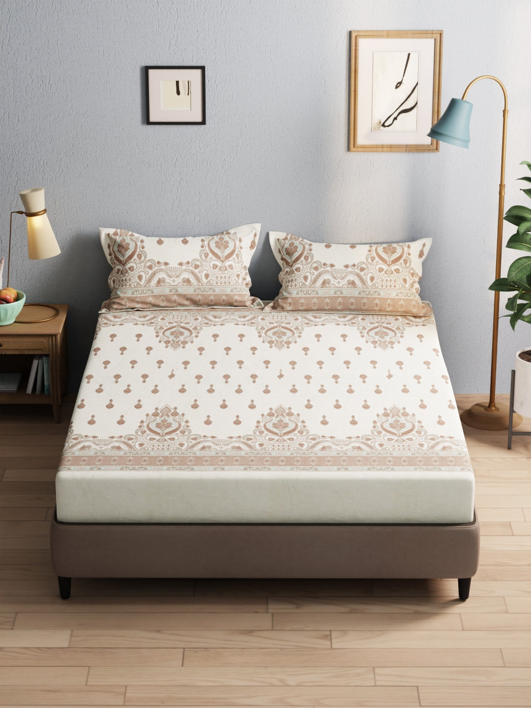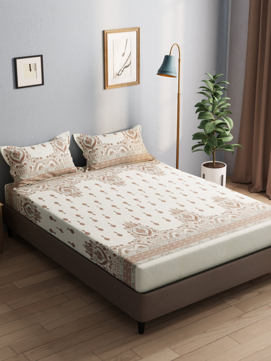 Enhance the beauty of your bedroom interiors with this cotton double bedsheet. It features a super soft and comfortable fabric for pleasant sleep. This set includes 1 pc double bedsheet and 2 pc pillow covers. It is easily machine washable and features an easy-care fabric finish. It is made with premium cotton fabric.