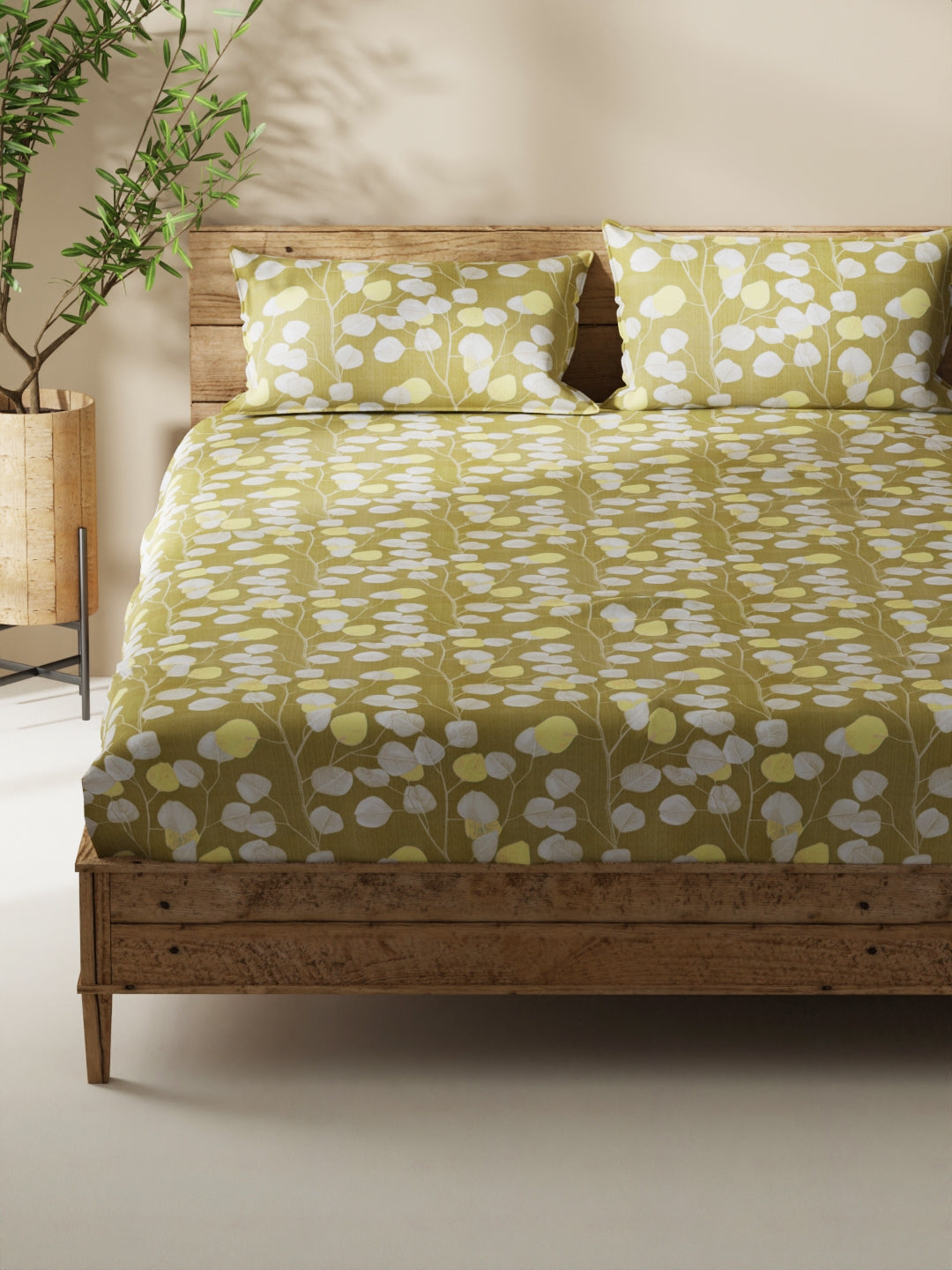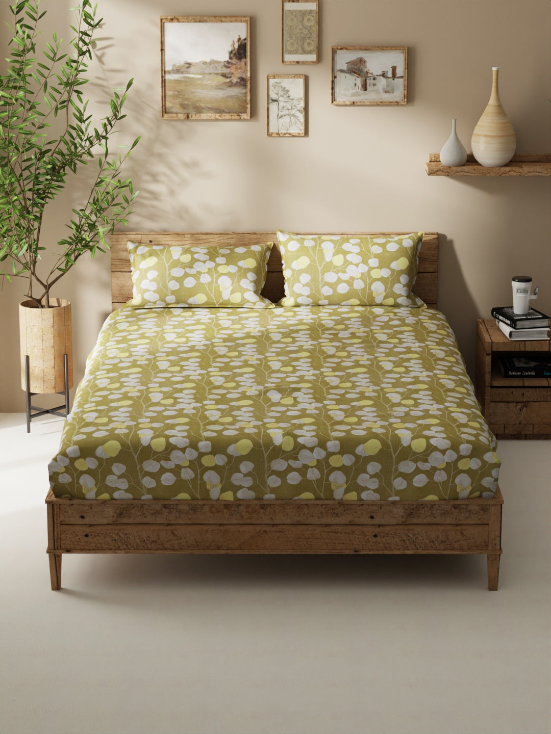Enhance the beauty of your bedroom interiors with this 100% cotton double bedsheet. It features a super soft and comfortable fabric for pleasant sleep. This set includes 1 pc double bedsheet and 2 pc pillow covers. It is easily machine washable and features an easy-care fabric finish. It is made with premium 110 TC 100% cotton fabric.