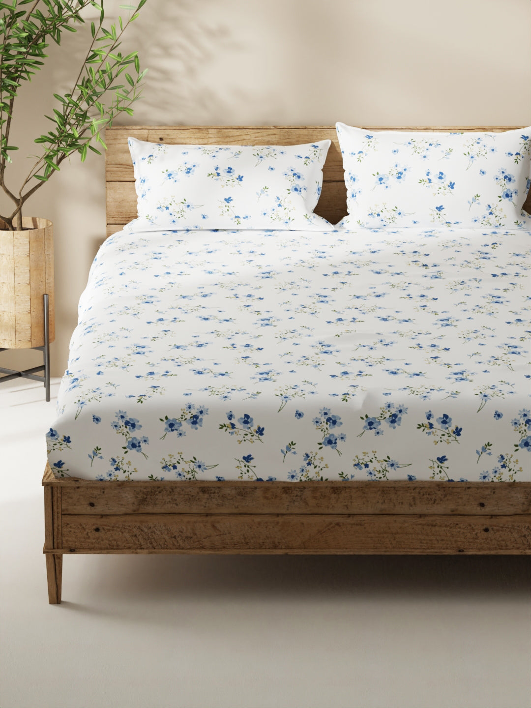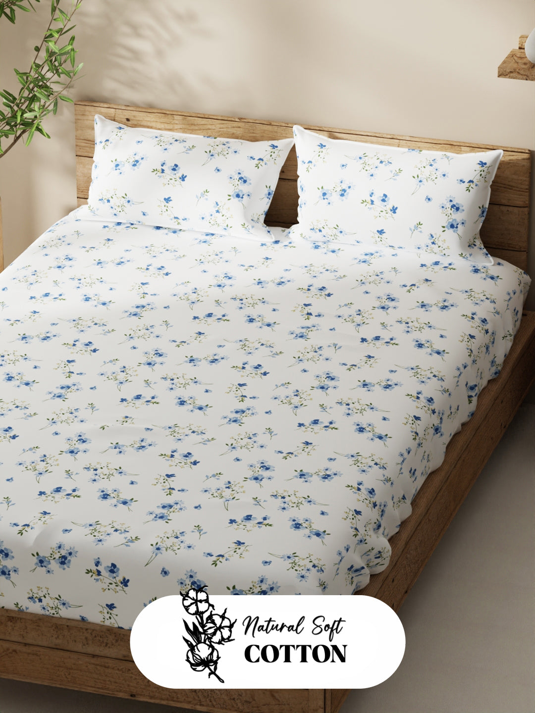 Enhance the beauty of your bedroom interiors with this 100% cotton double bedsheet. It features a super soft and comfortable fabric for pleasant sleep. This set includes 1 pc double bedsheet and 2 pc pillow covers. It is easily machine washable and features an easy-care fabric finish. It is made with premium 110 TC 100% cotton fabric.
