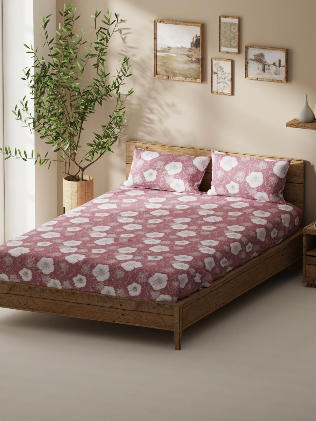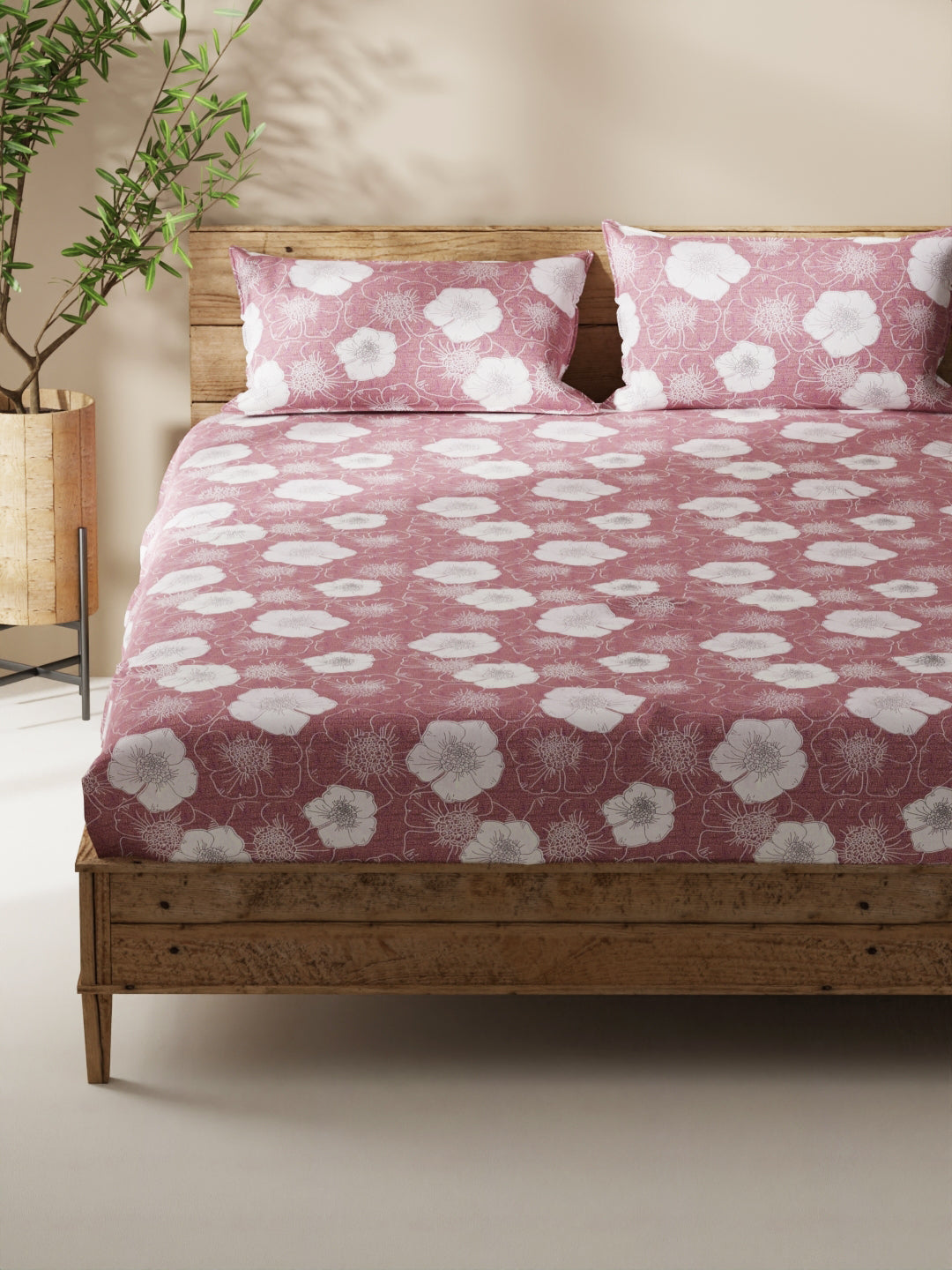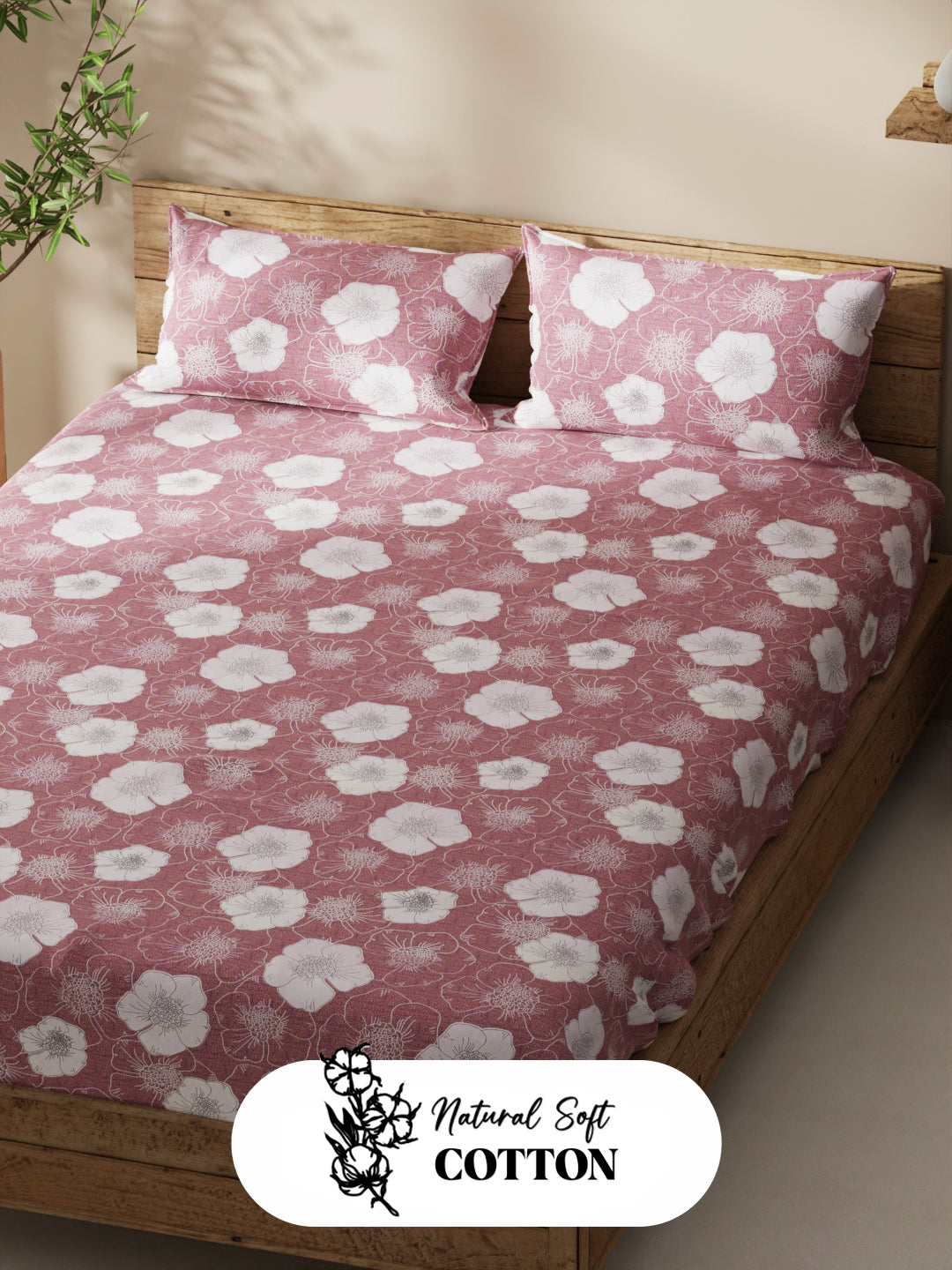 Enhance the beauty of your bedroom interiors with this 100% cotton double bedsheet. It features a super soft and comfortable fabric for pleasant sleep. This set includes 1 pc double bedsheet and 2 pc pillow covers. It is easily machine washable and features an easy-care fabric finish. It is made with premium 110 TC 100% cotton fabric.