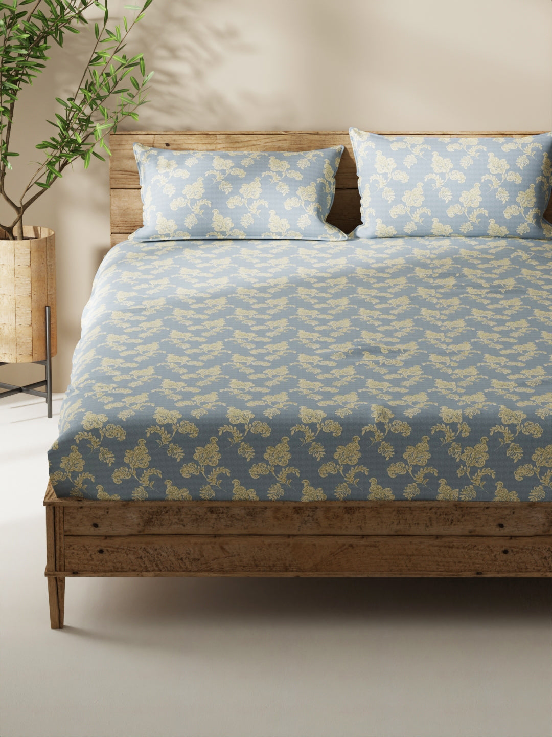 Enhance the beauty of your bedroom interiors with this 100% cotton double bedsheet. It features a super soft and comfortable fabric for pleasant sleep. This set includes 1 pc double bedsheet and 2 pc pillow covers. It is easily machine washable and features an easy-care fabric finish. It is made with premium 110 TC 100% cotton fabric.