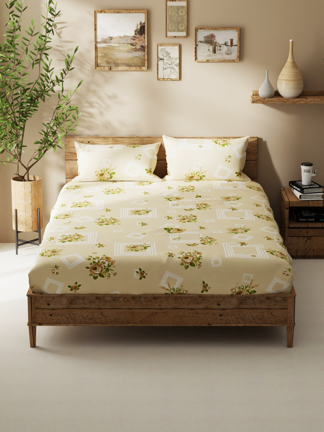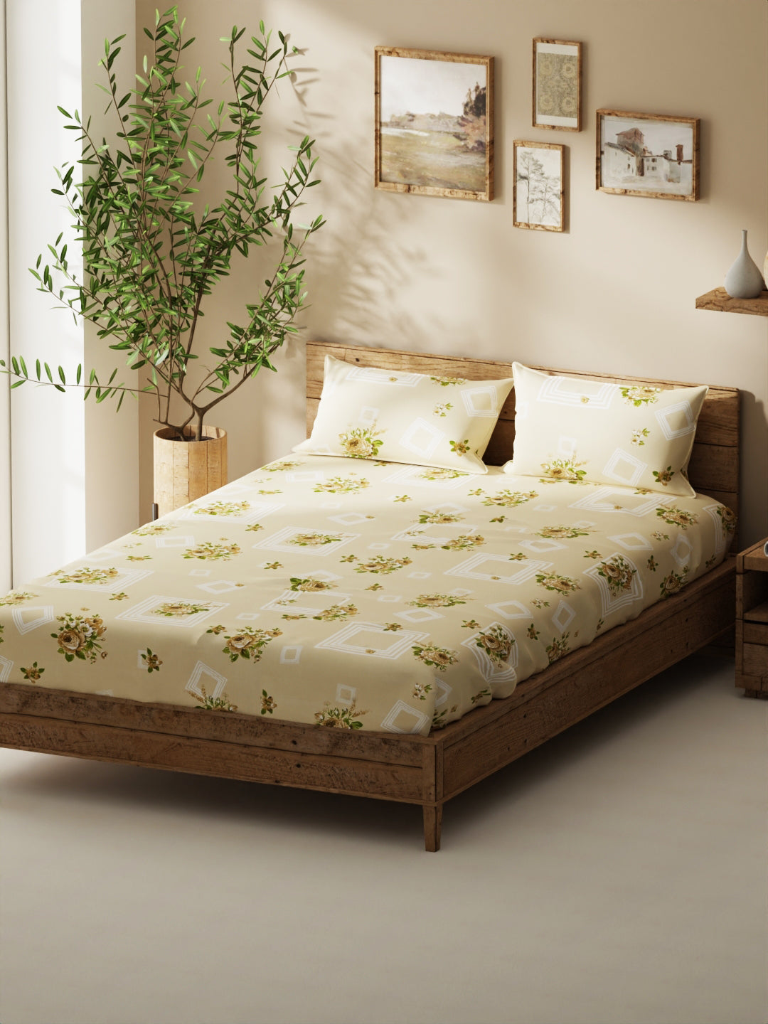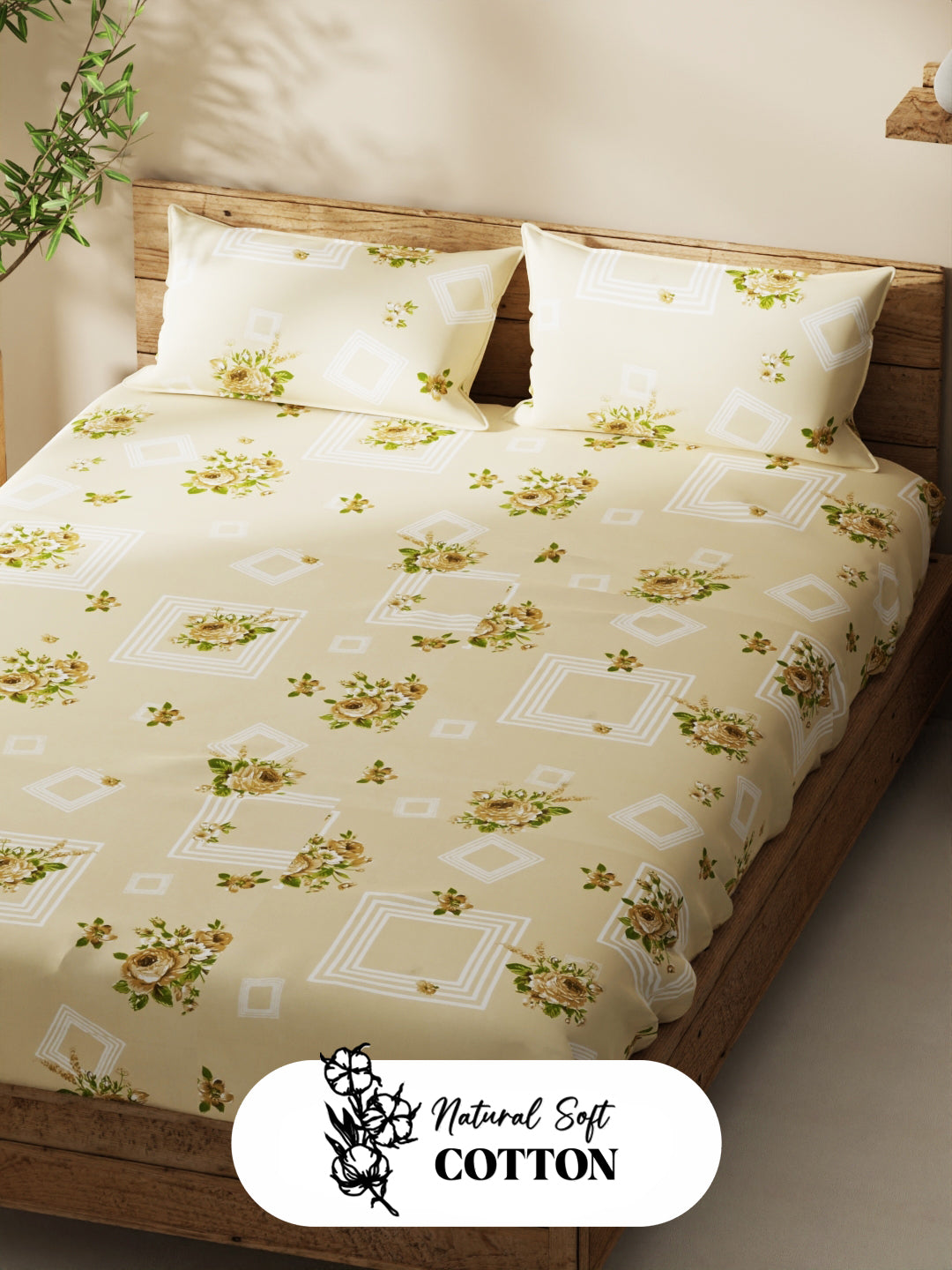 Enhance the beauty of your bedroom interiors with this 100% cotton double bedsheet. It features a super soft and comfortable fabric for pleasant sleep. This set includes 1 pc double bedsheet and 2 pc pillow covers. It is easily machine washable and features an easy-care fabric finish. It is made with premium 110 TC 100% cotton fabric.