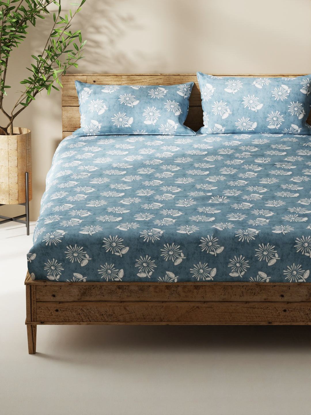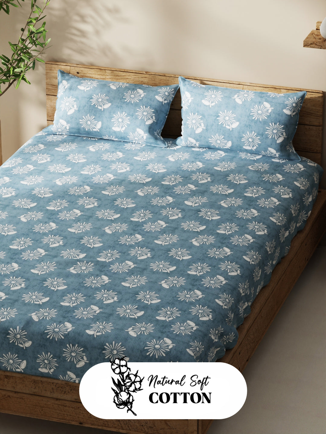 Enhance the beauty of your bedroom interiors with this 100% cotton double bedsheet. It features a super soft and comfortable fabric for pleasant sleep. This set includes 1 pc double bedsheet and 2 pc pillow covers. It is easily machine washable and features an easy-care fabric finish. It is made with premium 110 TC 100% cotton fabric.