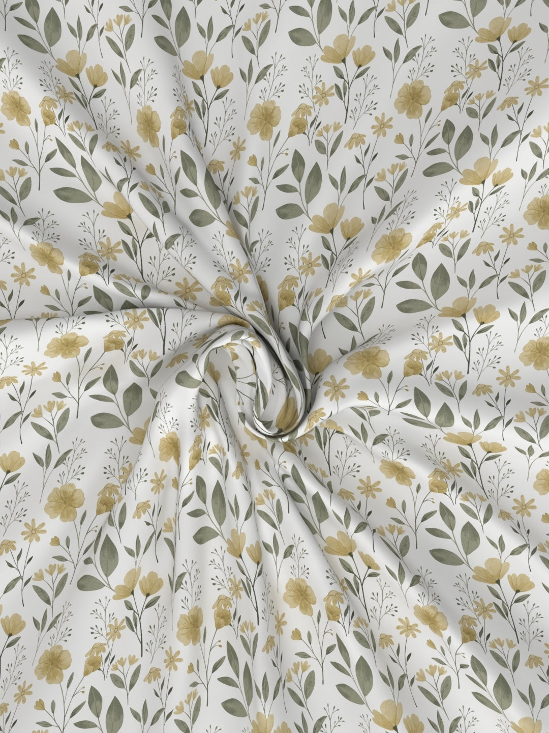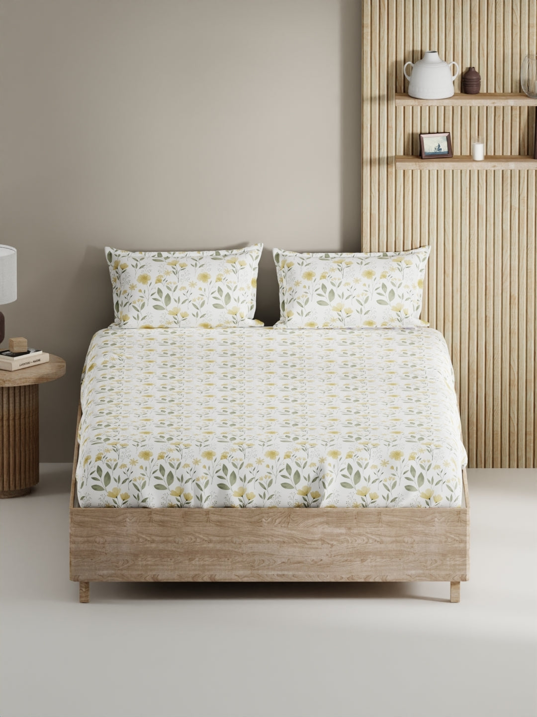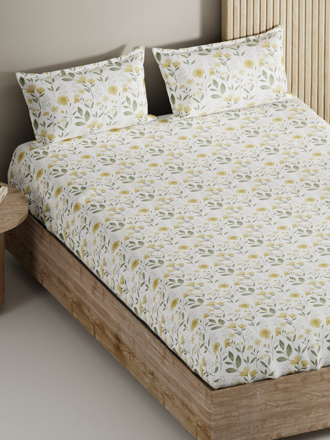 Soft 100% Natural Cotton, King Size Double Bedsheet With 2 Pillow Covers (floral-yellow/sage)