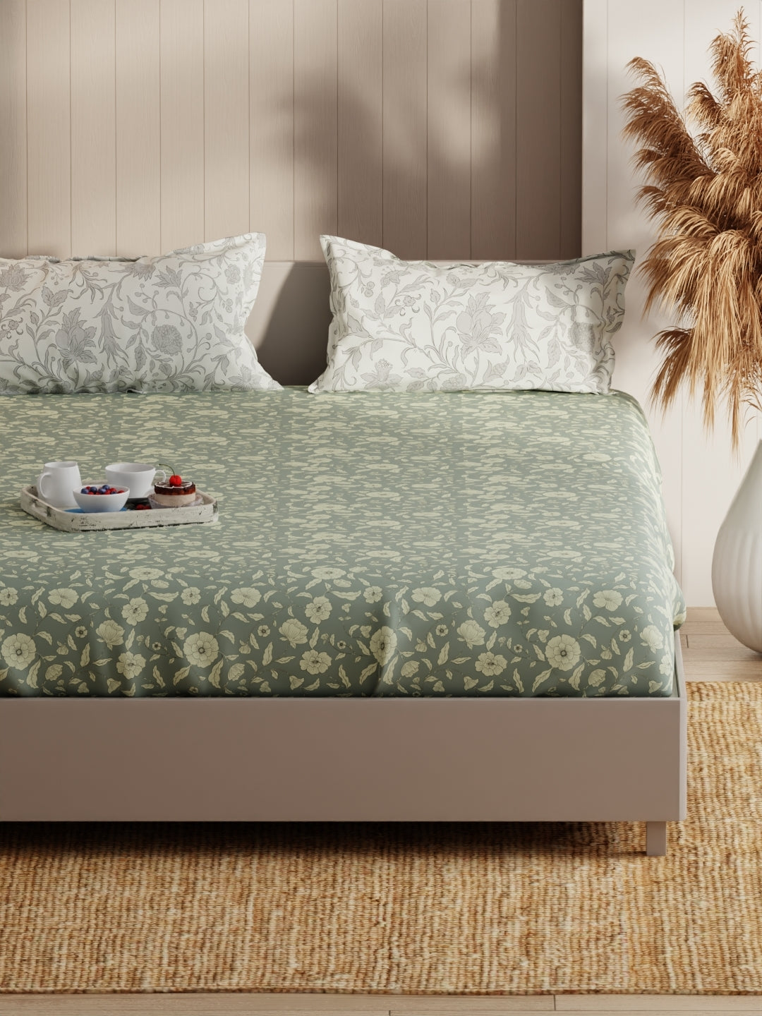 transform your bedroom with our 152 tc pure cotton double bedsheets. designed for comfort, these cotton bedsheets for double beds provide a soft, breathable touch for restful sleep. the 152 thread count ensures a smooth, durable finish. it fits both double and queen beds perfectly. enjoy the luxurious feel and affordability of our pure cotton bedsheets, which are wrinkle-resistant and easy to care for. ideal for upgrading your bedding with quality and style.