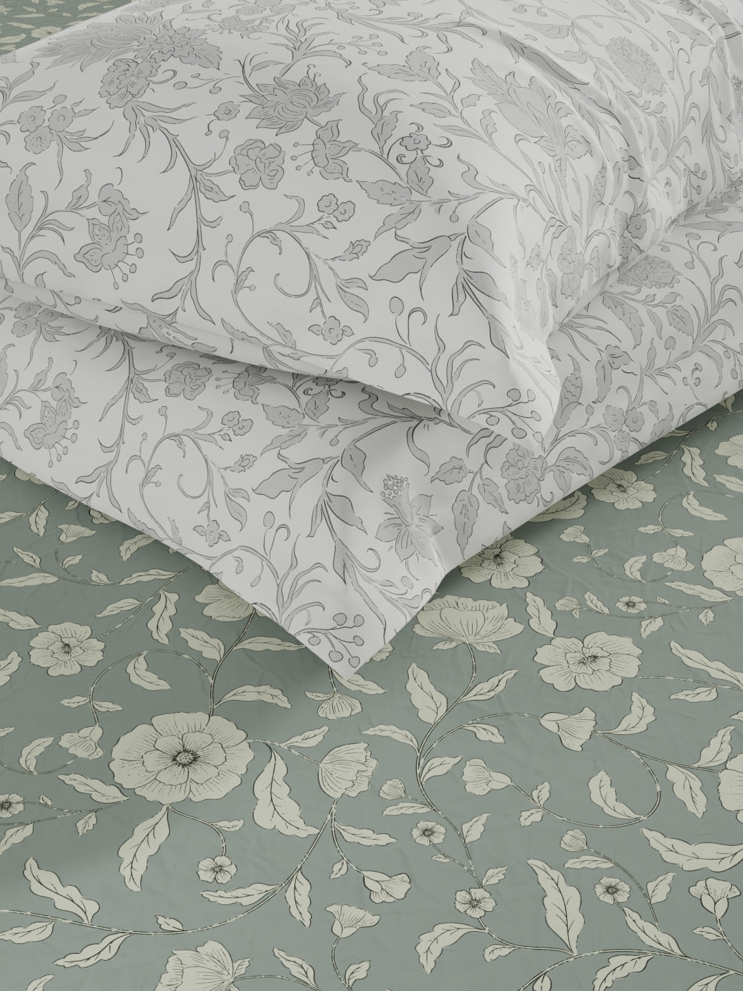 Extra Smooth Micro Double Bedsheet With 2 Pillow Covers (floral-grey)