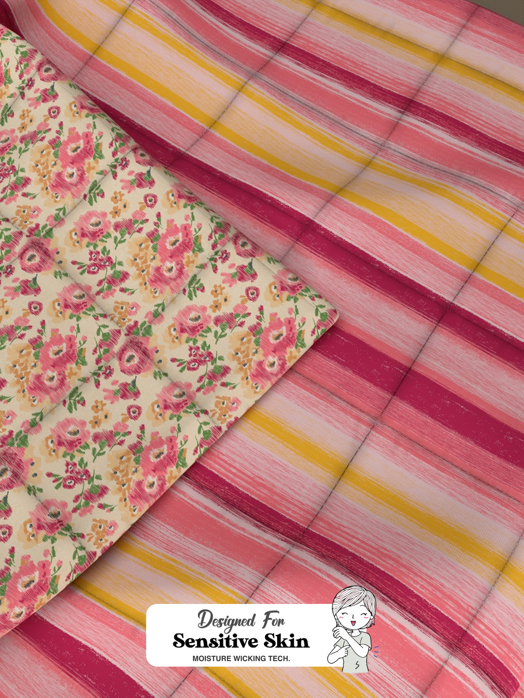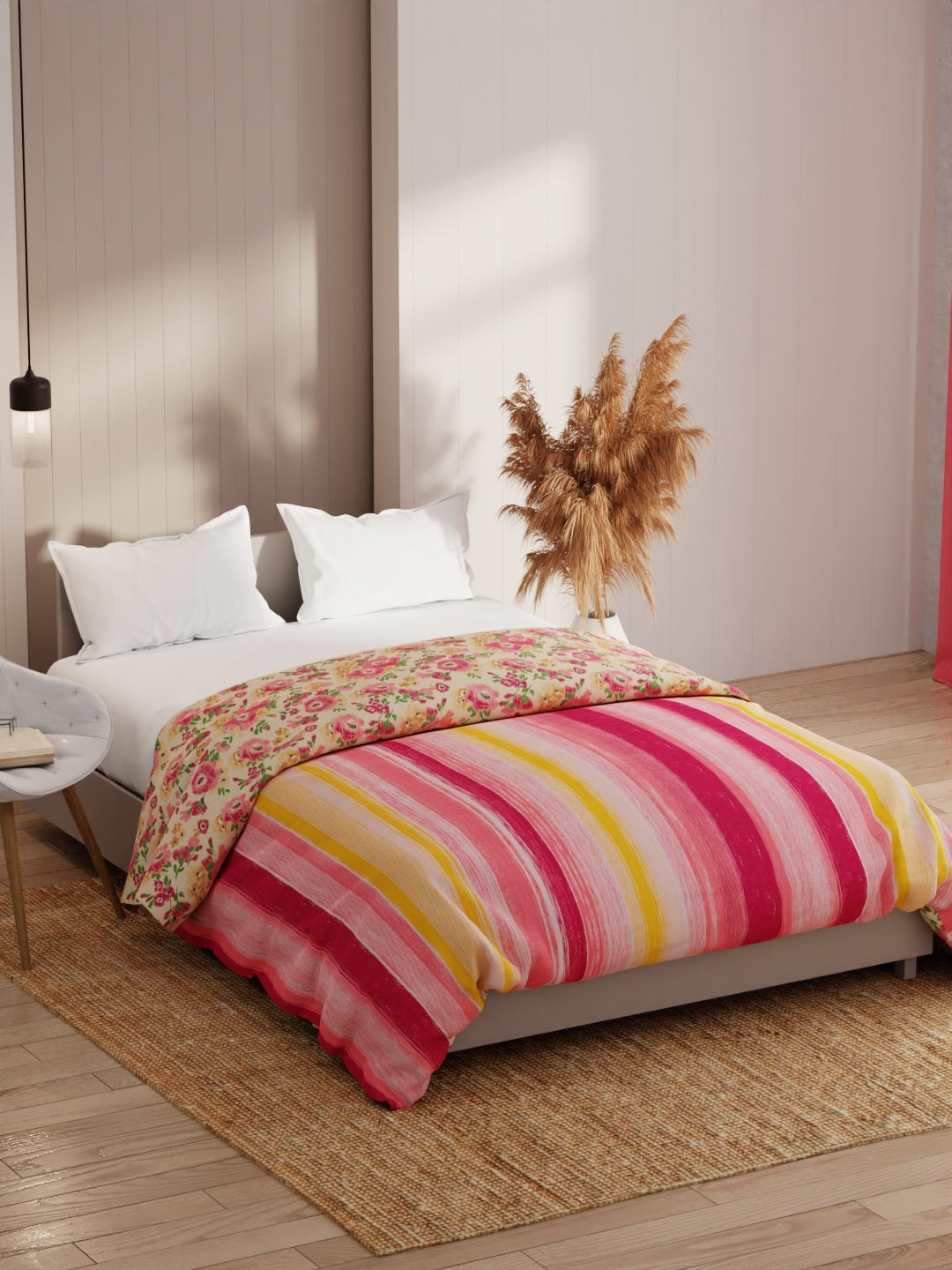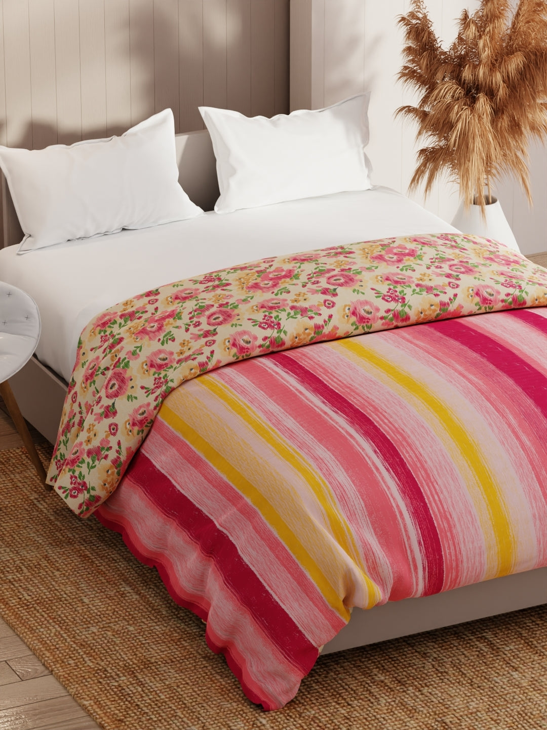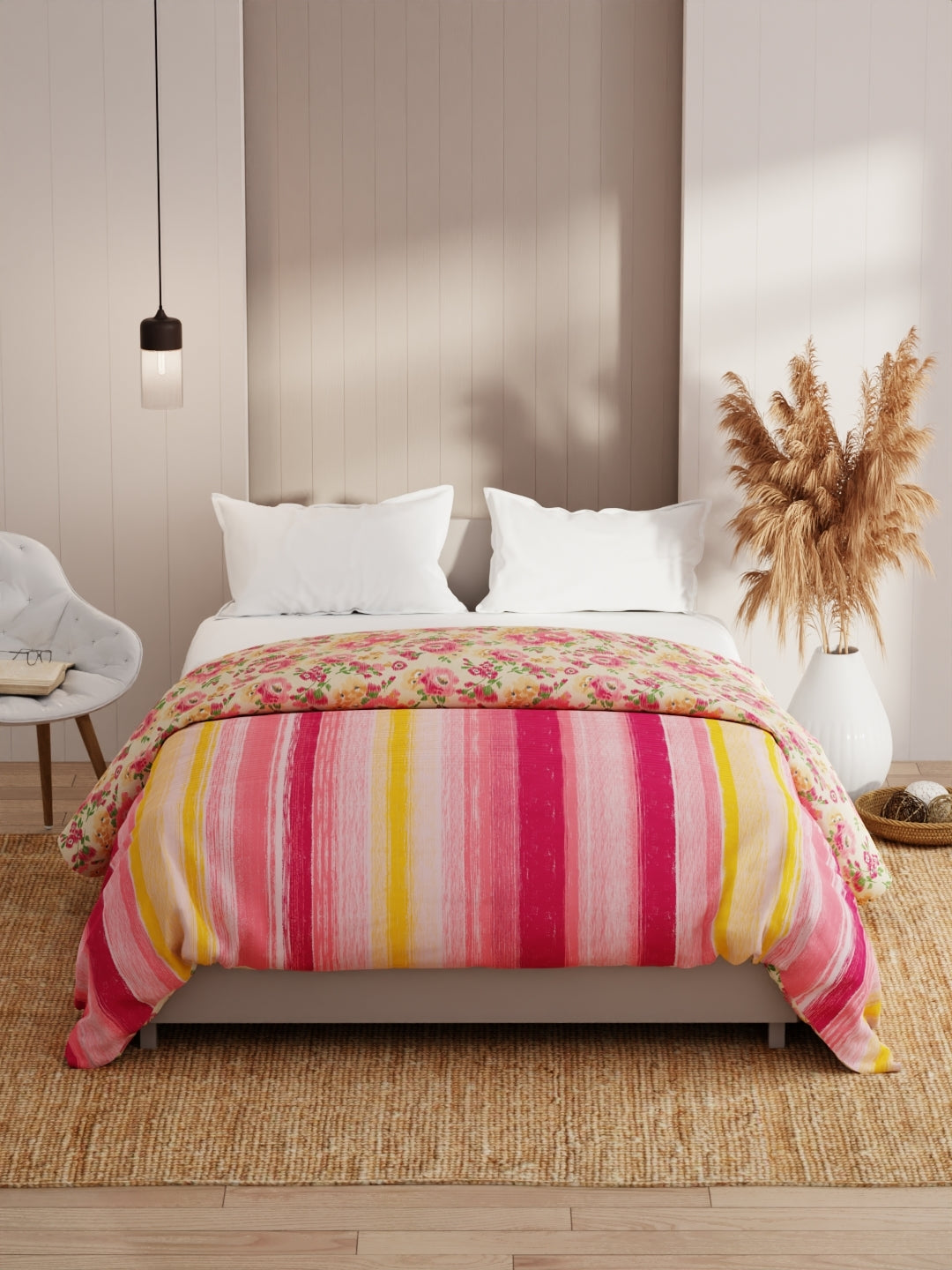 Super Soft Microfiber Comforter For All Weather (floral-pink/yellow)