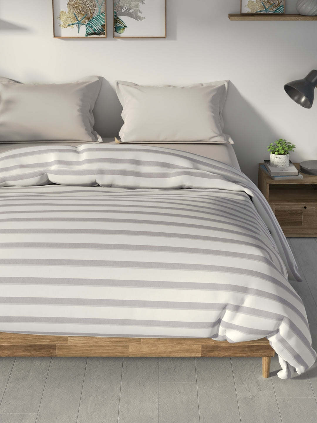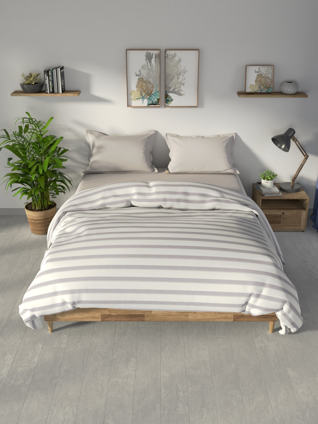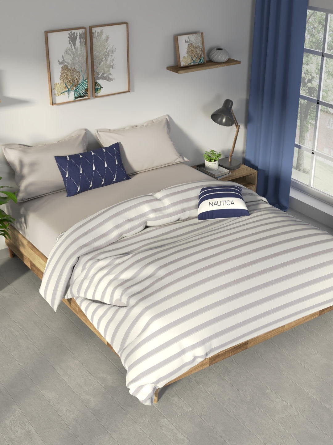 The Nautica Pacific Coast comforter enhances the beauty of your bedroom interiors instantly. It is made with aloe vera gel fiber filling of 130 gsm, making it temperature controlled as per your body temperature. Its outer shell is made of high thread count 160 TC 100% premium cotton fabric, which gives you the softest feeling. It has a special dustproof layer, which helps to keep you and your loved one safe. These comforters are suitable for use in AC rooms and in all seasons. It will keep you warm and cozy-feeling. It features the quality stitch and beautiful quilted pattern. Elegant prints do not fade away even after daily use. This comforter gets softer with every wash. It's machine washable and easy to maintain.