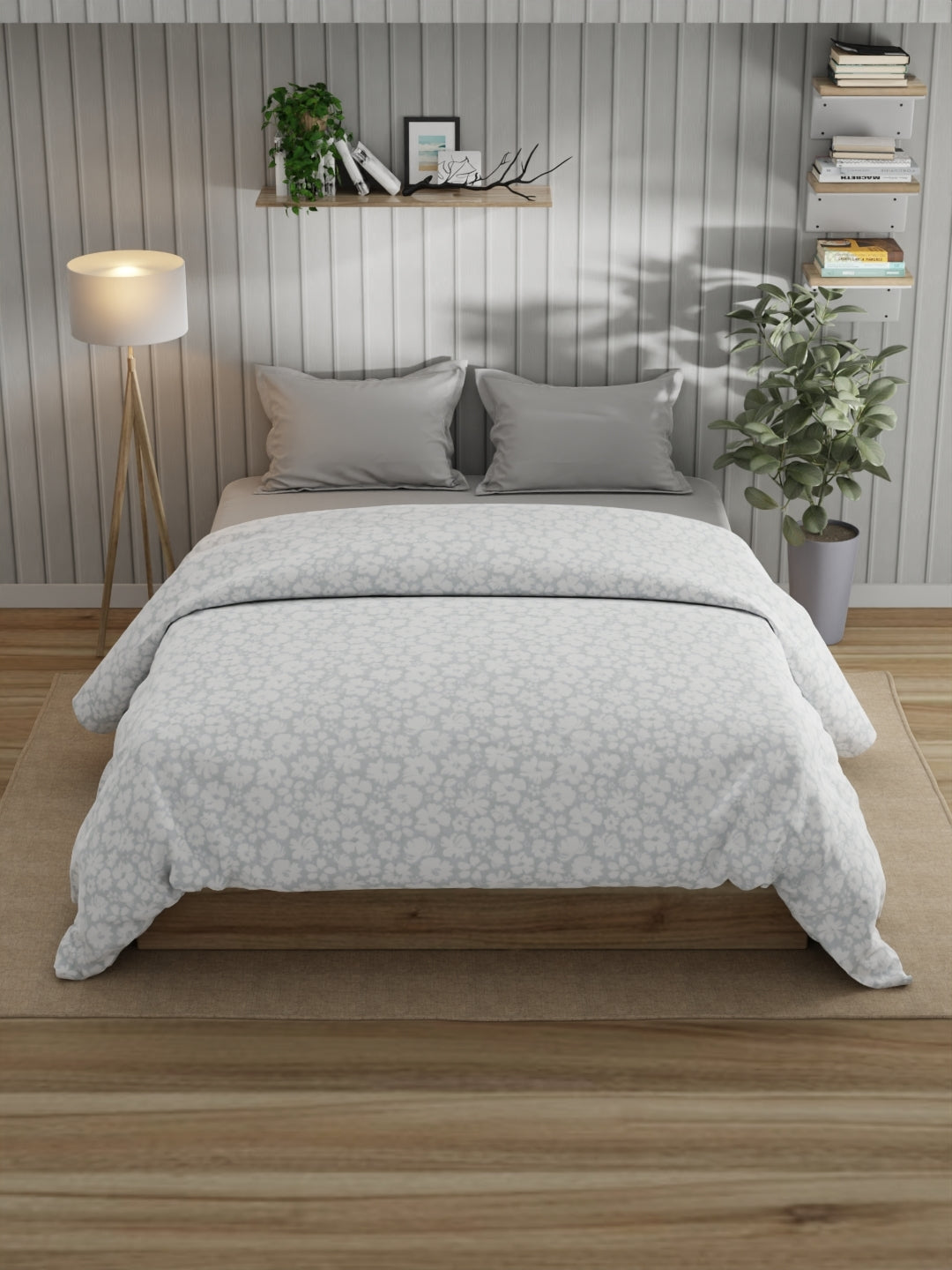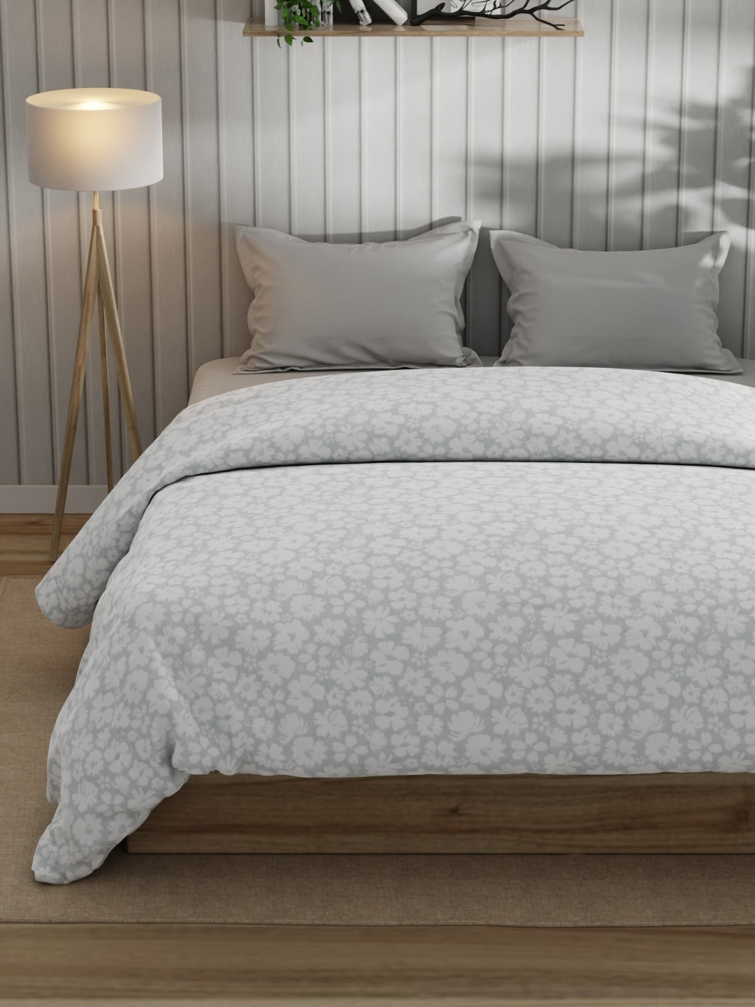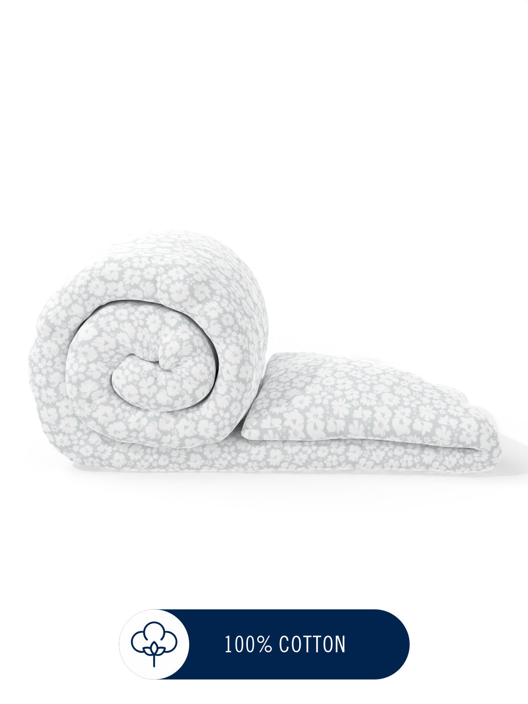 Super Fine 100% Egyptian Satin Cotton Comforter For All Weather (floral-grey)