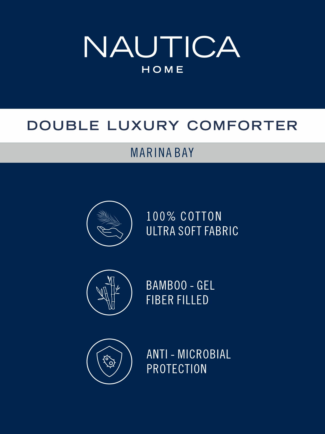 nautica marina bay comforters gives an elagnt and luxurious look to your room. it is made with bamboo gel fiber filling of 150 gsm making it temperature controlled as per your body temprature. it's outer shell is made of 100% egyptian satin cotton fabric which gives you silky smooth feeling against your skin. it has a special anti-microbial finishing which helps to keep you and your loved one safe. these comforters are suitable for use in ac room and in all seasons. it will keep you warm and cozy feeling. it features the quality stitch and beautiful quilted pattern. elegant prints does not fade away even after daily use. this comforter gets softer with every wash. it's machine washable and easy to maintain.