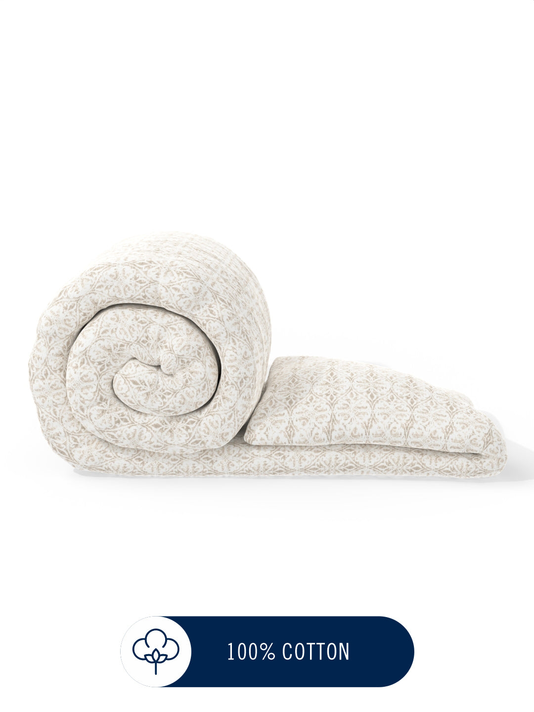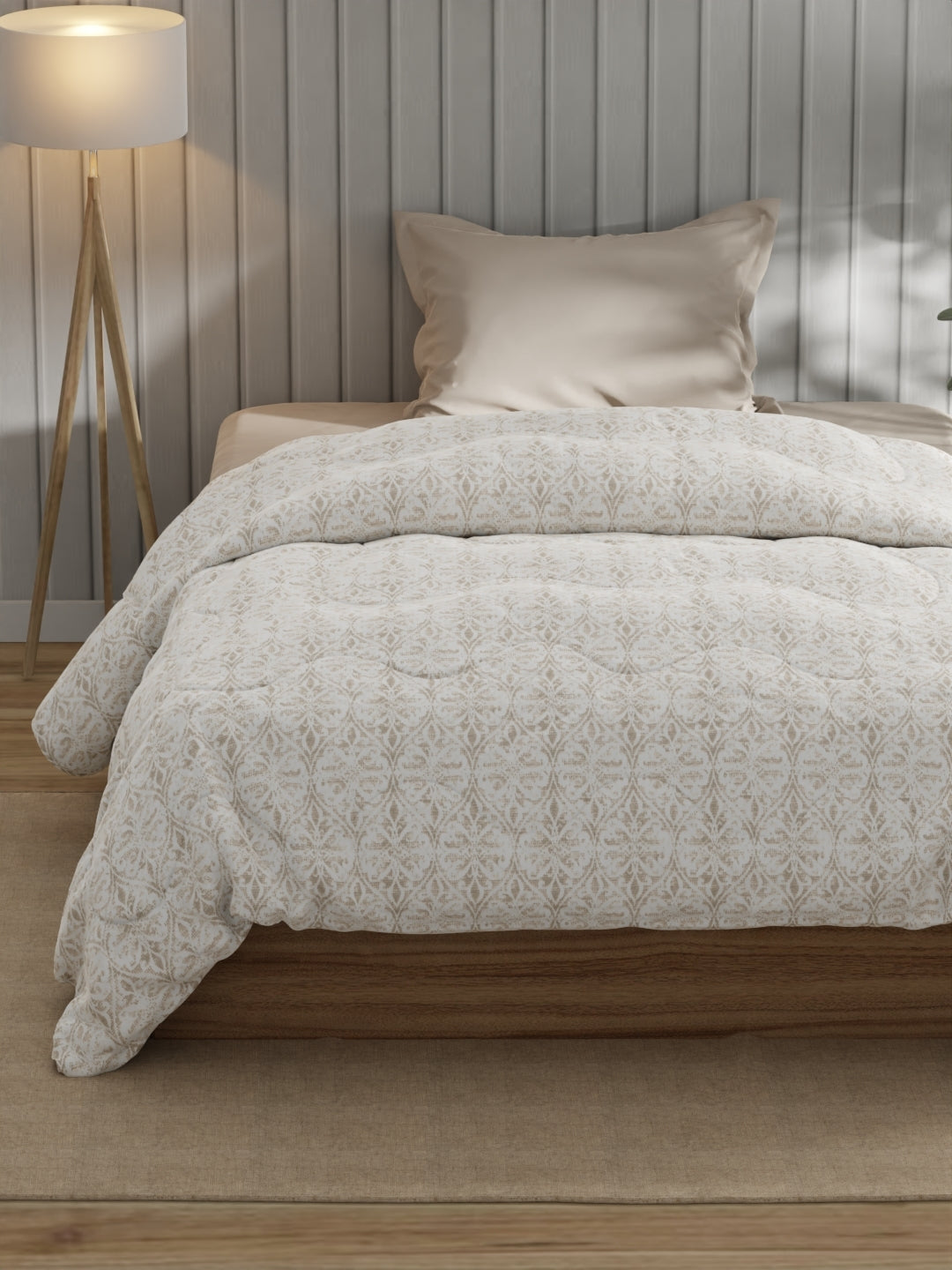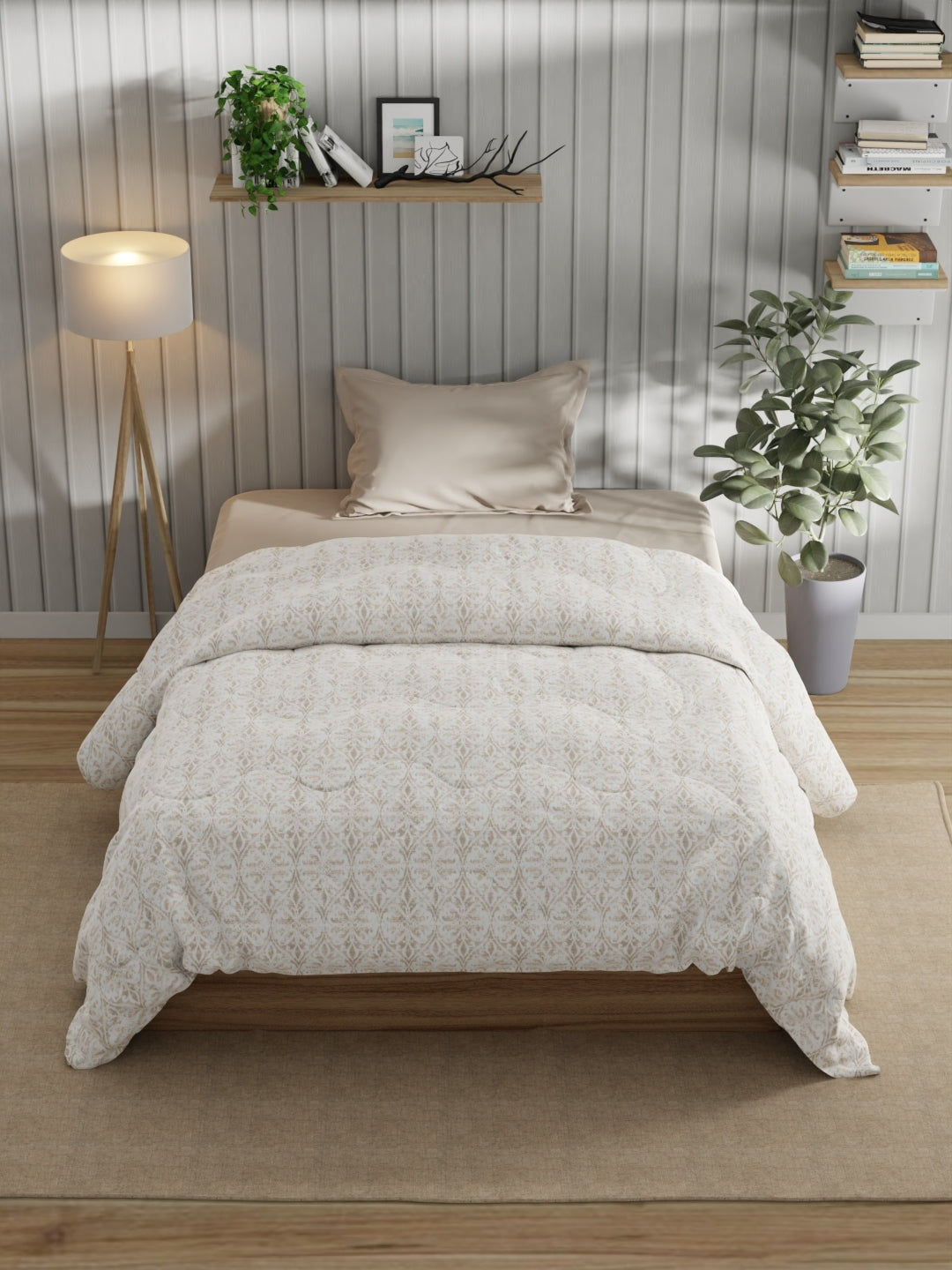 The Nautica Marina Bay comforter gives an elegant and luxurious look to your room. It is made with a bamboo gel fiber filling of 150 gsm, making it temperature controlled as per your body temperature. Its outer shell is made of 100% Egyptian satin cotton fabric, which gives you a silky smooth feeling against your skin. It has a special antimicrobial finishing, which helps to keep you and your loved one safe. These comforters are suitable for use in AC rooms and in all seasons. It will keep you warm and cozy-feeling. It features the quality stitch and beautiful quilted pattern. Elegant prints do not fade away even after daily use. This comforter gets softer with every wash. It's machine washable and easy to maintain.