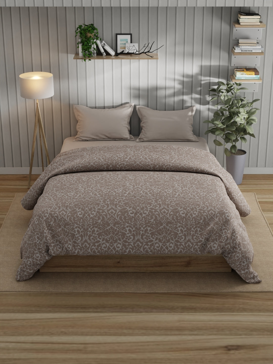 Super Fine 100% Egyptian Satin Cotton Comforter For All Weather (floral-khakhi)