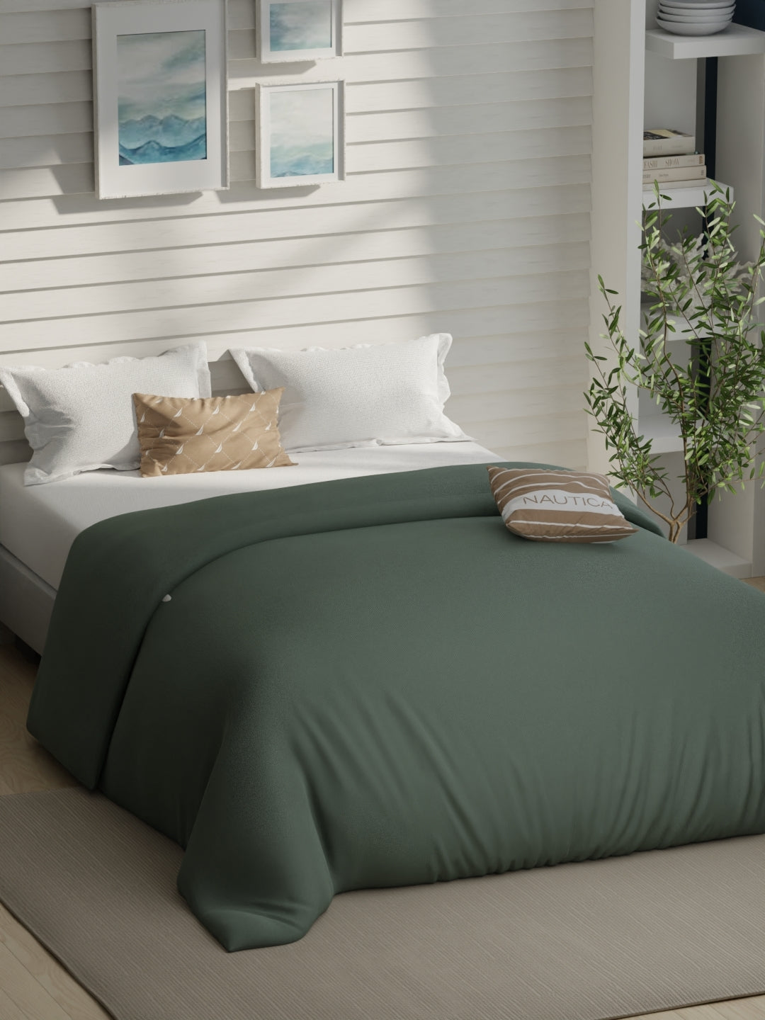 Nautica Fairwater comforters are trendsetters and can transform your space completely. This fashionable comforter is made with aloe vera gel fiber filling of 130 gsm, making it temperature controlled as per your body temperature. Its outer shell is made of high thread count 160 TC 100% premium cotton fabric, which gives you the softest feeling. It has a special dustproof layer, which helps to keep you and your loved one safe. These comforters are suitable for use in AC rooms and in all seasons. It will keep you warm and cozy-feeling. It features the quality stitch and beautiful quilted pattern. Elegant prints do not fade away even after daily use. This comforter gets softer with every wash. It's machine washable and easy to maintain.