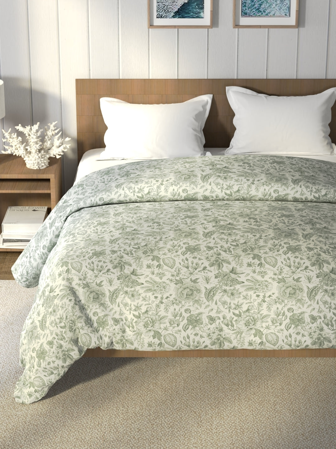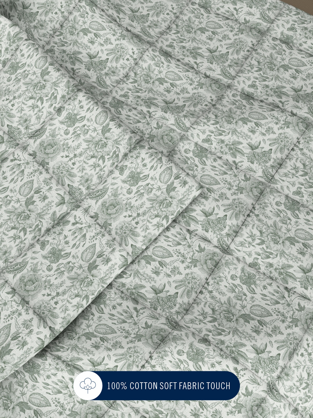 Super Soft 100% Cotton Fabric Comforter For All Weather (floral-moss)