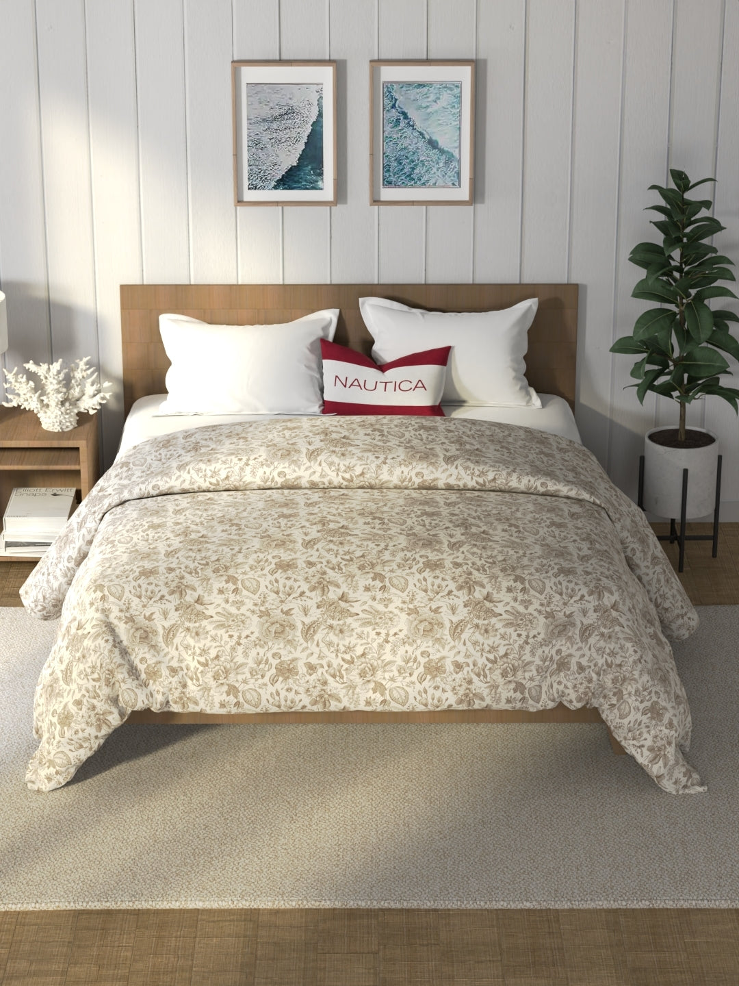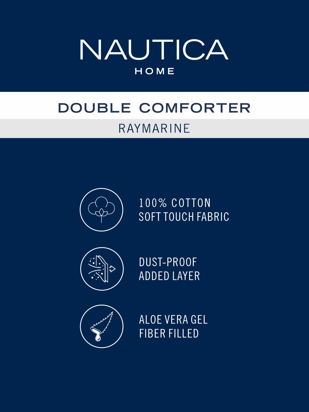 Nautica Raymarine comforters are trendsetters and can transform your space completely. These fashionable comforters are made with aloe vera gel fiber filling of 130 gsm, making them temperature controlled as per your body temperature. The outer shell is made of high thread count 150 TC 100% premium cotton fabric, which gives you the softest feeling. It has a special dustproof layer, which helps to keep you and your loved one safe. These comforters are suitable for use in AC rooms and in all seasons. It will keep you warm and cozy-feeling. It features the quality stitch and beautiful quilted pattern. Elegant prints do not fade away even after daily use. This comforter gets softer with every wash. It's machine washable and easy to maintain.