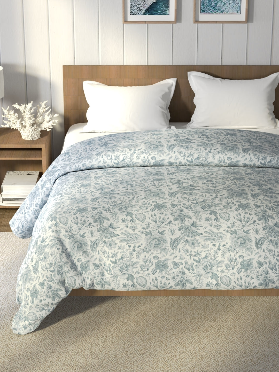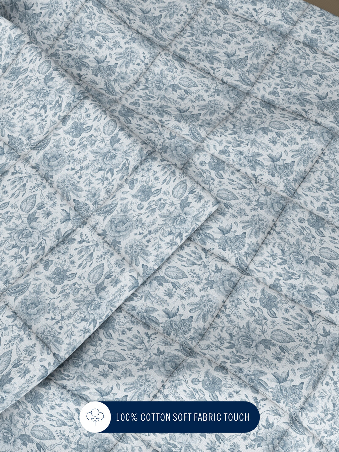 Super Soft 100% Cotton Fabric Comforter For All Weather (floral-cobaltblue)