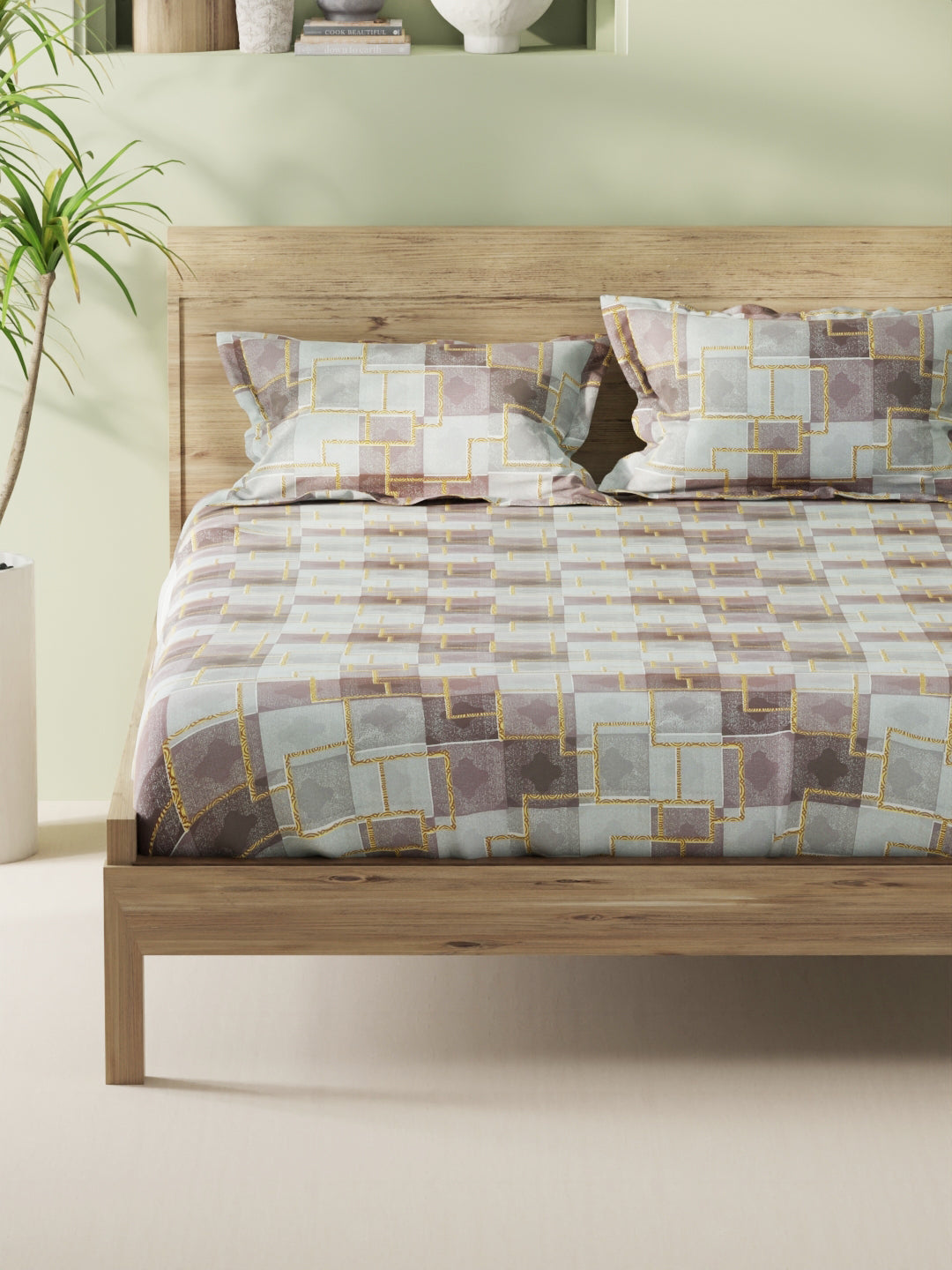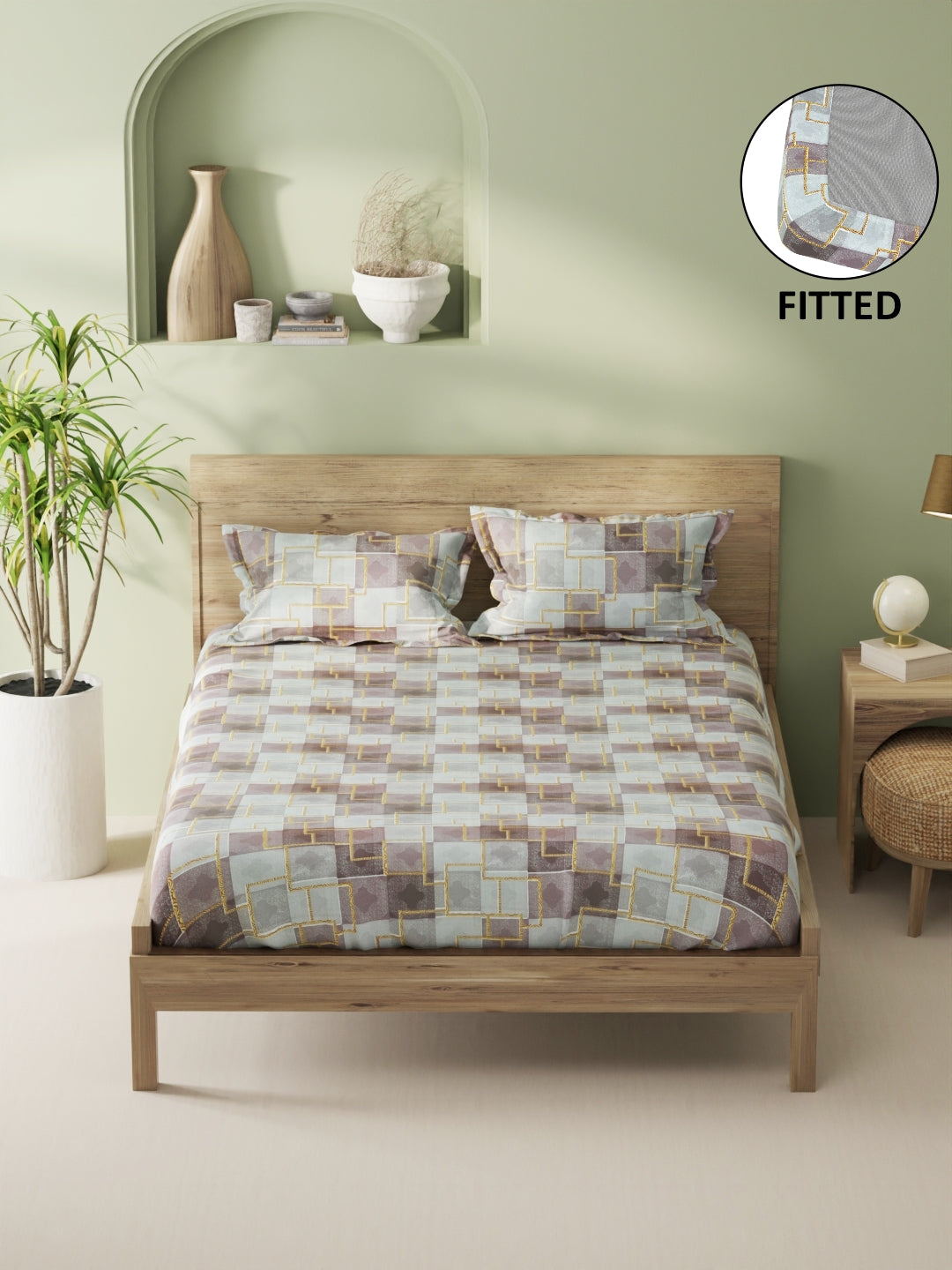 tired of tucking the bedsheets? you should definitely go for these fitted sheets. 100% cotton double fitted bedsheet set with drop of 16.5 inches, can fit 6.5x6.5 feet and upto 12" height mattress, it features a super soft and comfortable fabric for pleasant sleep. this set also comes with two matching pillow covers. it is easily machine washable hence makes its handling simple.