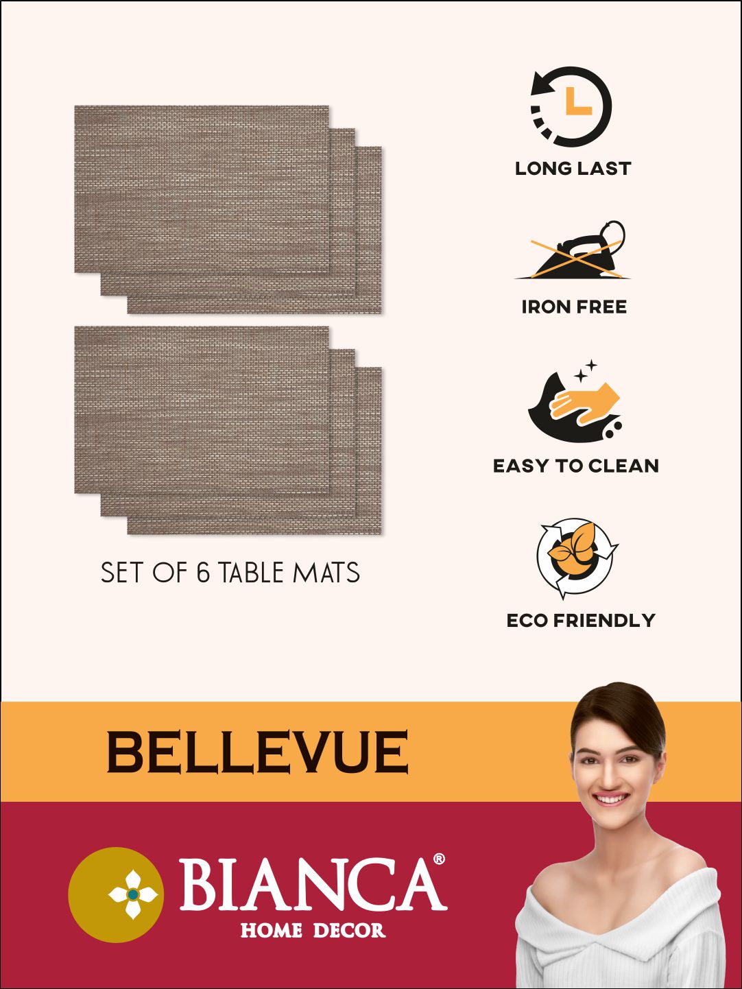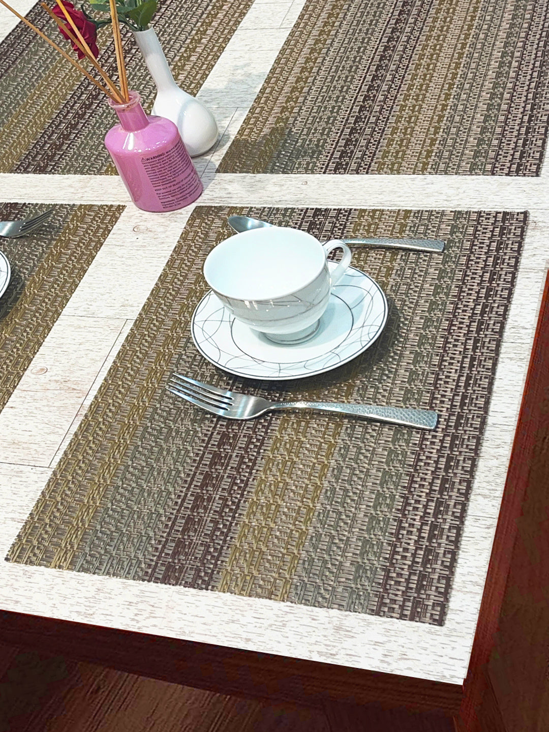 these mats are luxuriously thick & classy. these are made from recycled plastic material - you are in-turn supporting saving earth from plastic wastage. the woven pattern makes these mats have a designer feel & pvc material makes it easy to clean. comes in set of 6 pc - for your luxurious dining experience.
