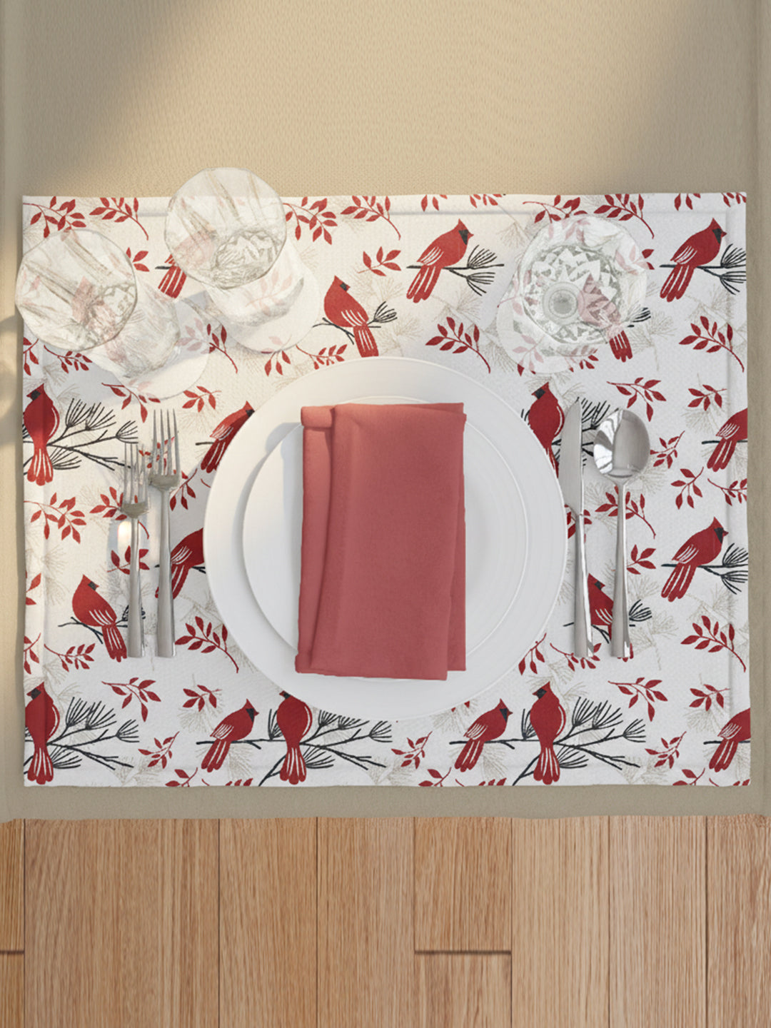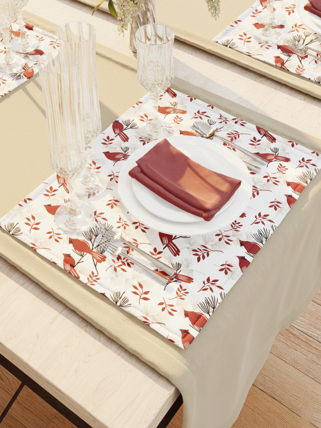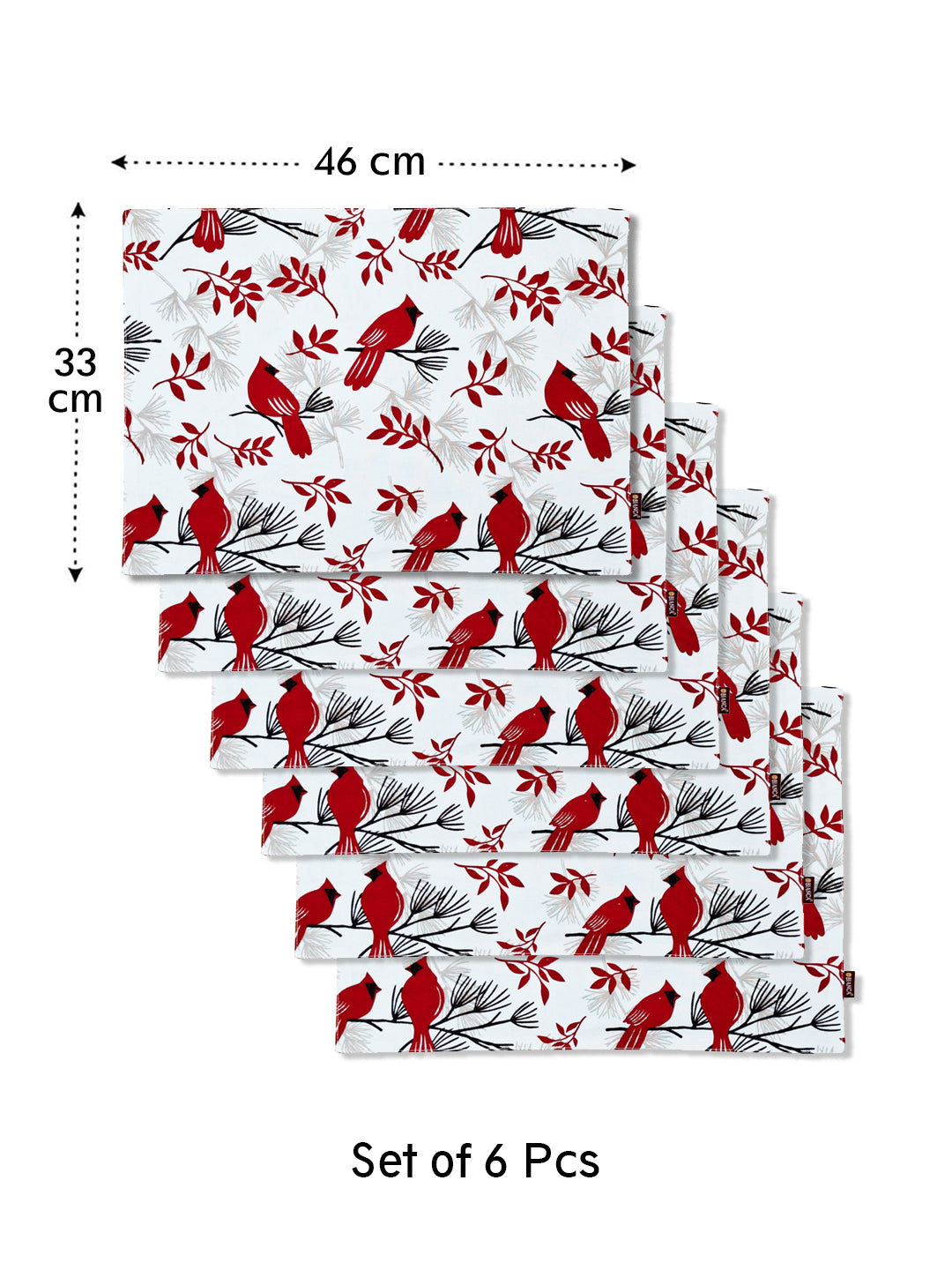 Premium Printed Cotton Dining Table Mats (floral-beige/red)