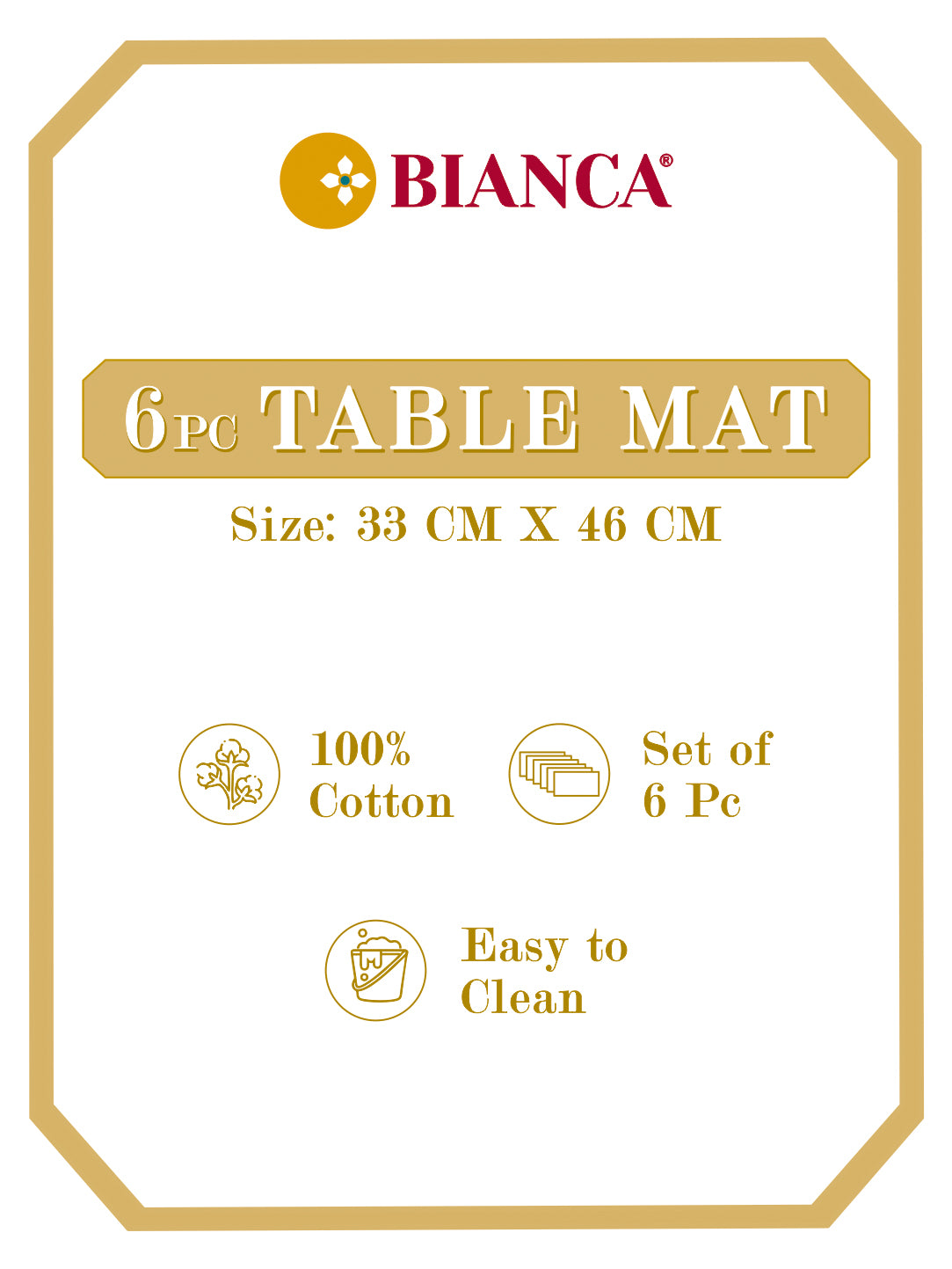 Enhance your dining space with this premium dining table mat. Made from cotton, these placemats are perfect for 6-seater tables. They are ideal for handling vessels, easy to clean, and stylish—perfect dining mats for everyday use.