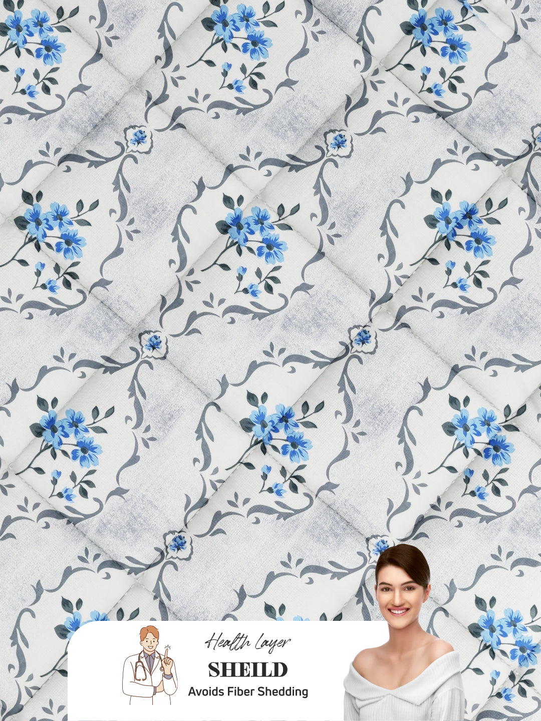 Super Soft 100% Natural Cotton Fabric Double Comforter For Winters (floral-white/blue)