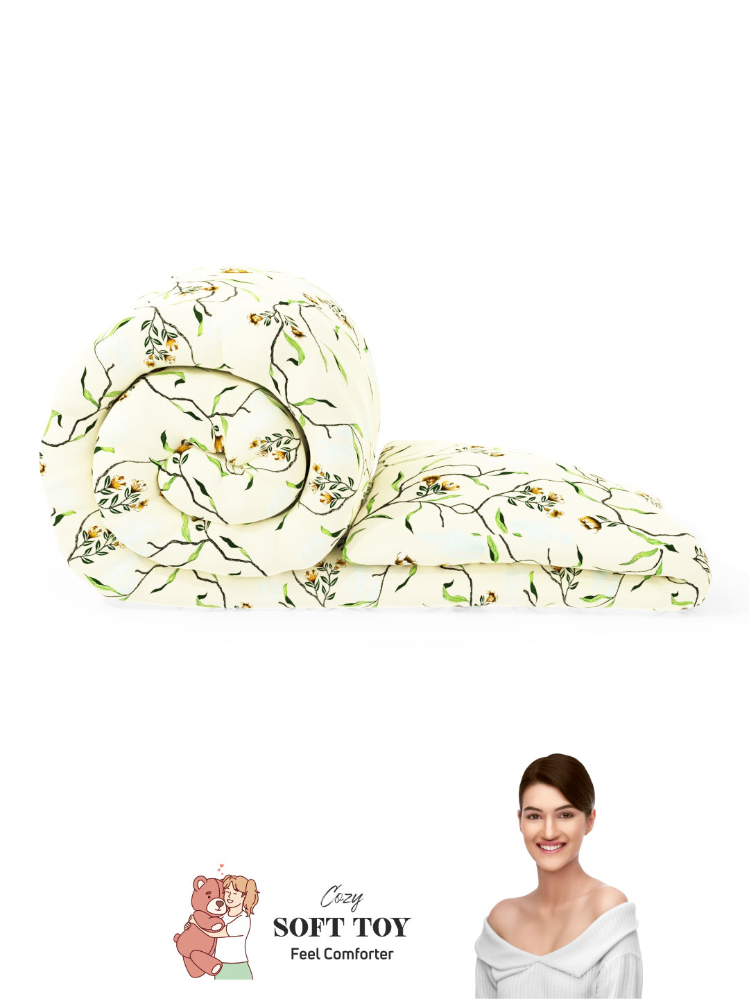 Super Soft 100% Natural Cotton Fabric Double Comforter For Winters (floral-lt.yellow)