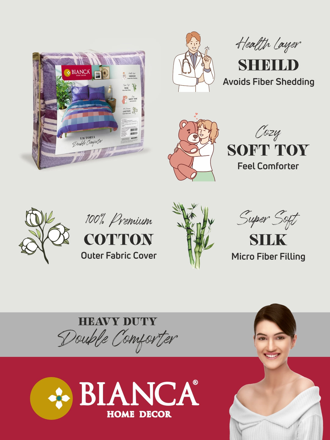 it features a 100% cotton super-soft fabric for pleasant sleep. the comforter is filled with silken-micro fiber, and is suited for winters. the fabric is backed with a health layer to avoid any fiber coming out. it is easily machine washable.