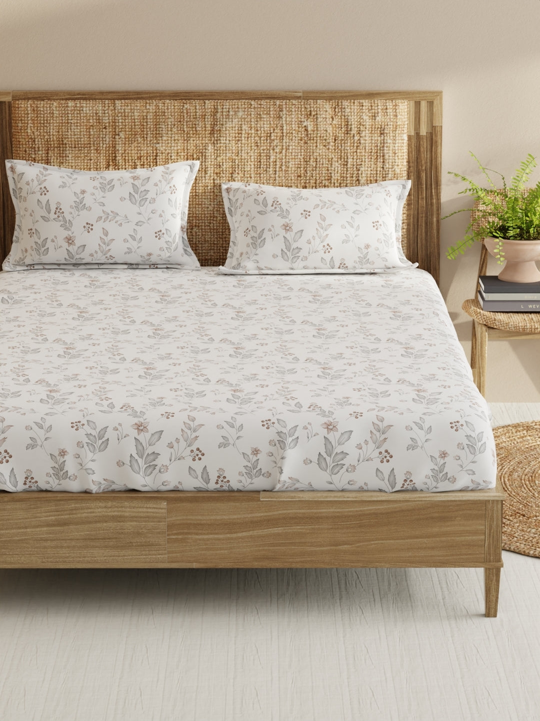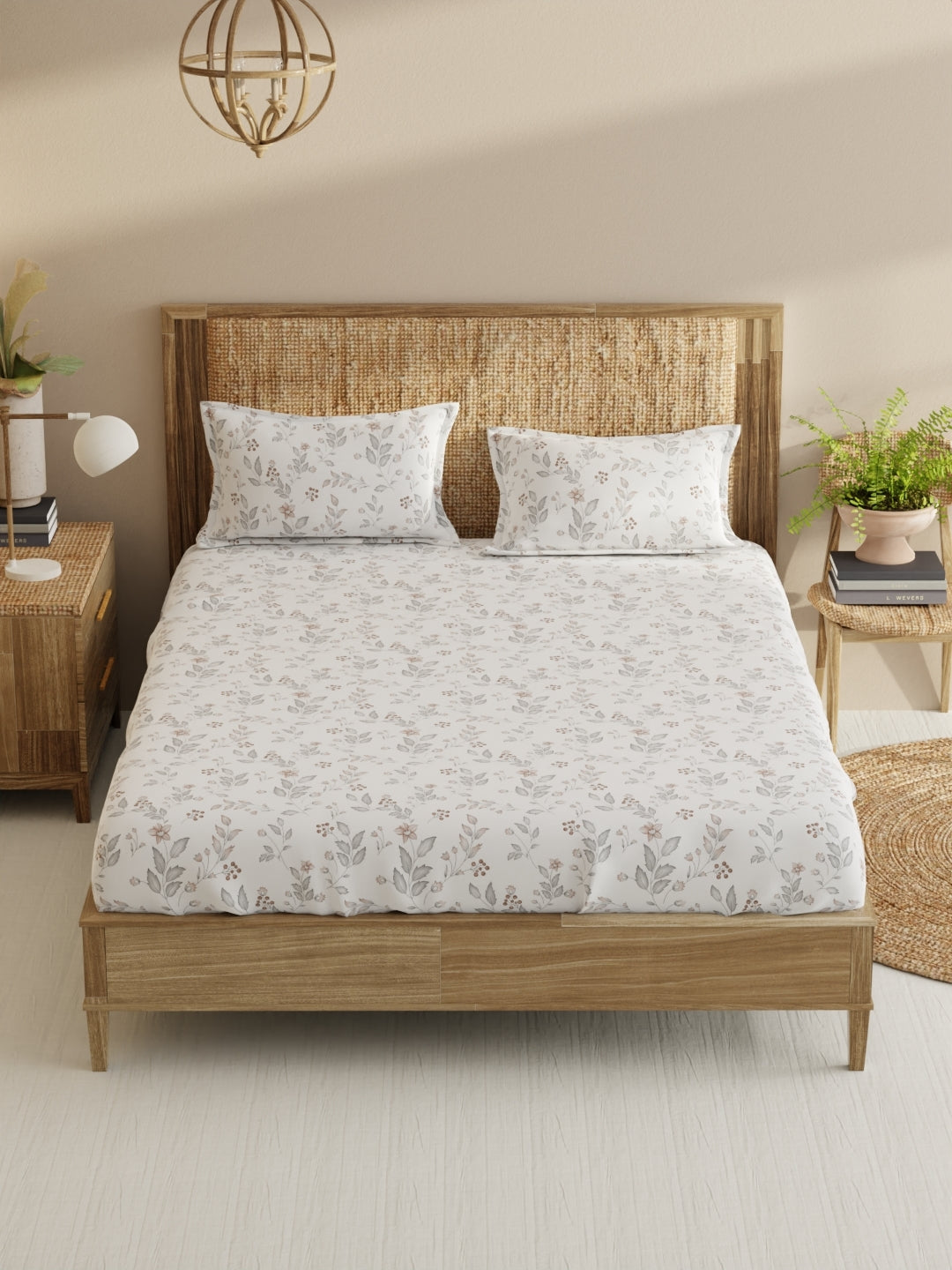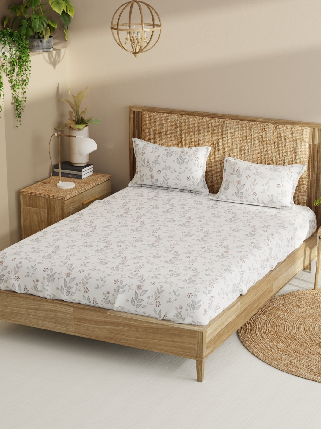 Made from 100% mercerized combed cotton, with 210 TC satin fabric and skin-friendly prints to ensure comfort and style, this beautiful bed set adds charm to your bedroom. Made for a king-size bed, the set includes a double bedsheet and two pillow covers. Soft and luxurious, it's machine washable and easy to maintain.