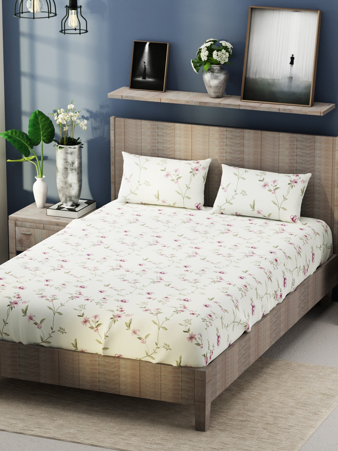 This bedsheet is treated with a brushed-peach finish for a softer feel. The fabric is heavy duty & features zero color fading. The modern print enhances the beauty of your bedroom interiors. This set also comes with two matching pillow covers. It is easily machine washable, hence making its handling simple.