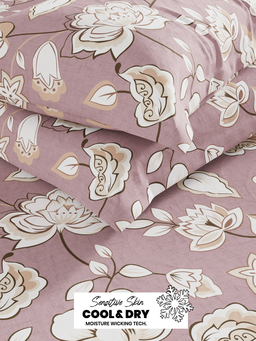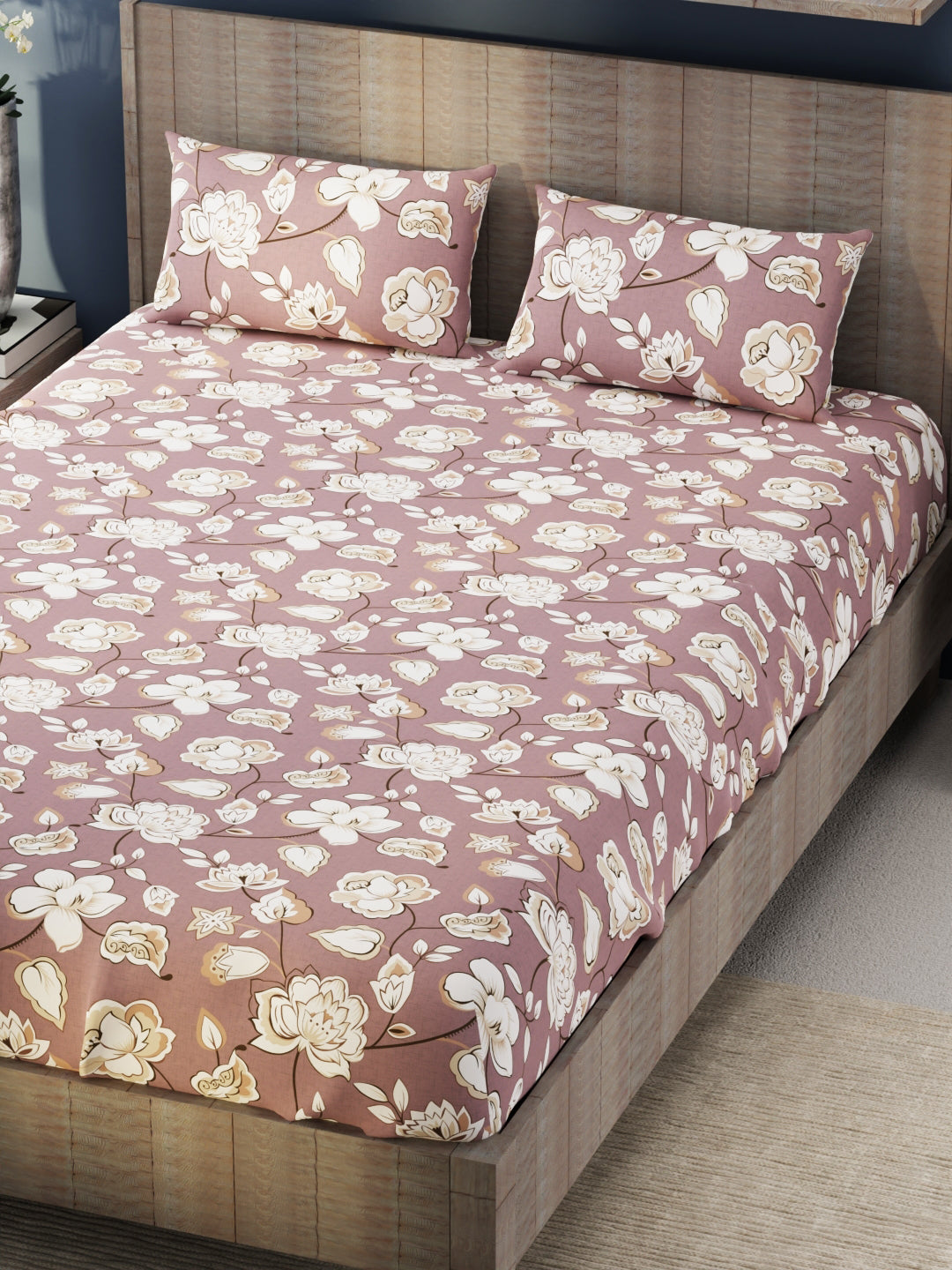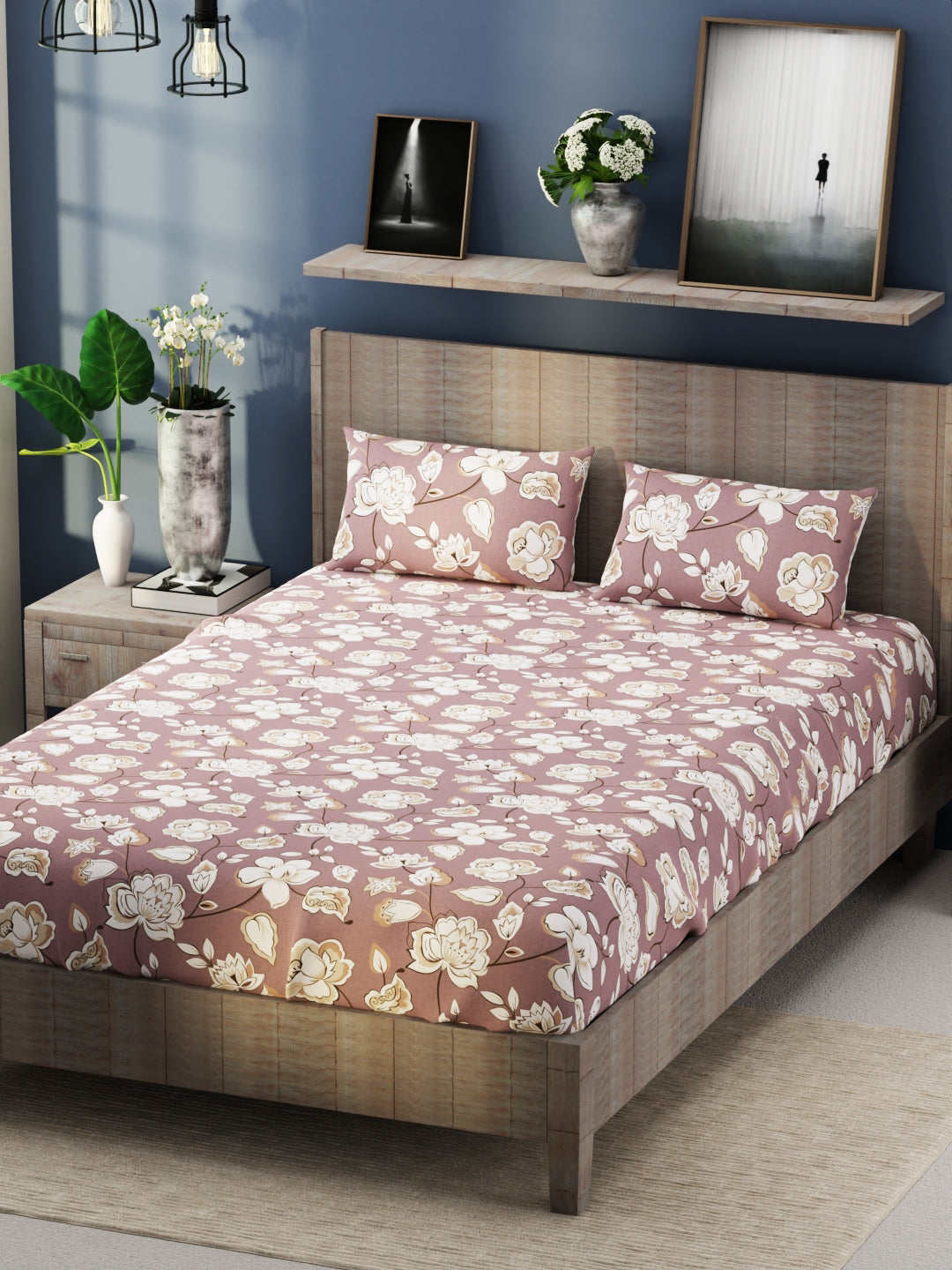 This bedsheet is treated with a brushed-peach finish for a softer feel. The fabric is heavy duty and features zero color fading. The modern print enhances the beauty of your bedroom interiors. This set also comes with two matching pillow covers. It is easily machine washable, hence making its handling simple.