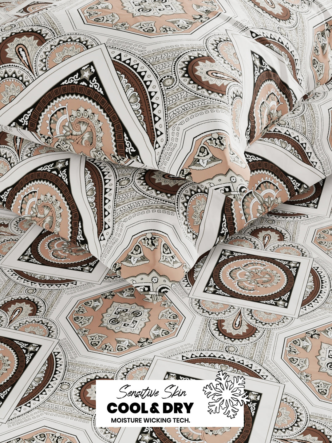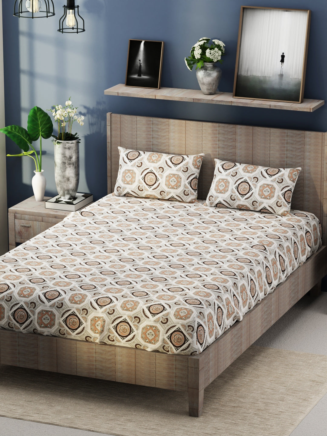 This bedsheet is treated with a brushed-peach finish for a softer feel. The fabric is heavy duty and features zero color fading. The modern print enhances the beauty of your bedroom interiors. This set also comes with two matching pillow covers. It is easily machine washable, hence making its handling simple.