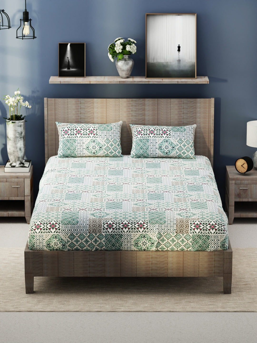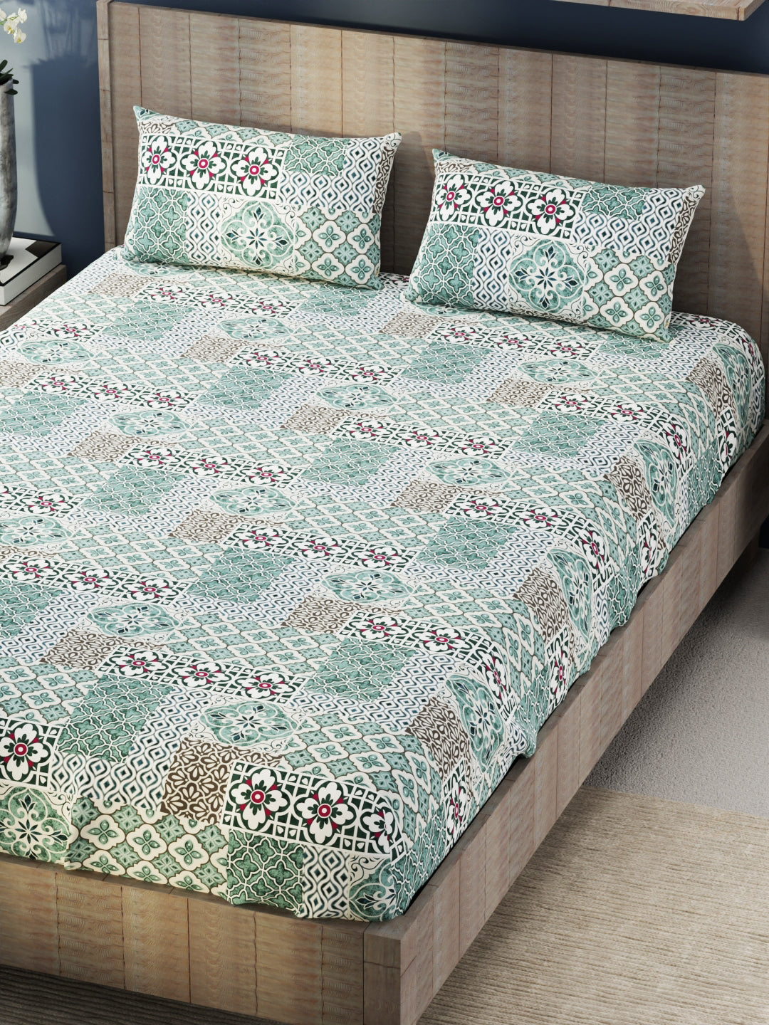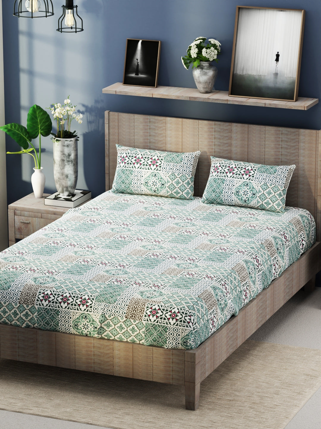 This bedsheet is treated with a brushed-peach finish for a softer feel. The fabric is heavy duty and features zero-color fading. Enhance the beauty of your bedroom interiors with this modern print. This set also comes with two matching pillow covers. It is easily machine washable, hence making its handling simple.