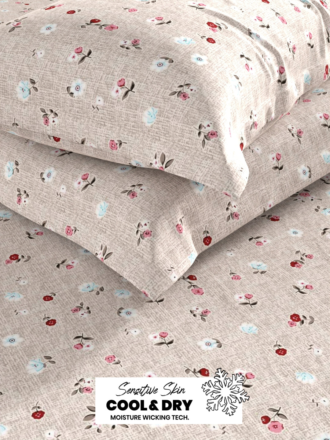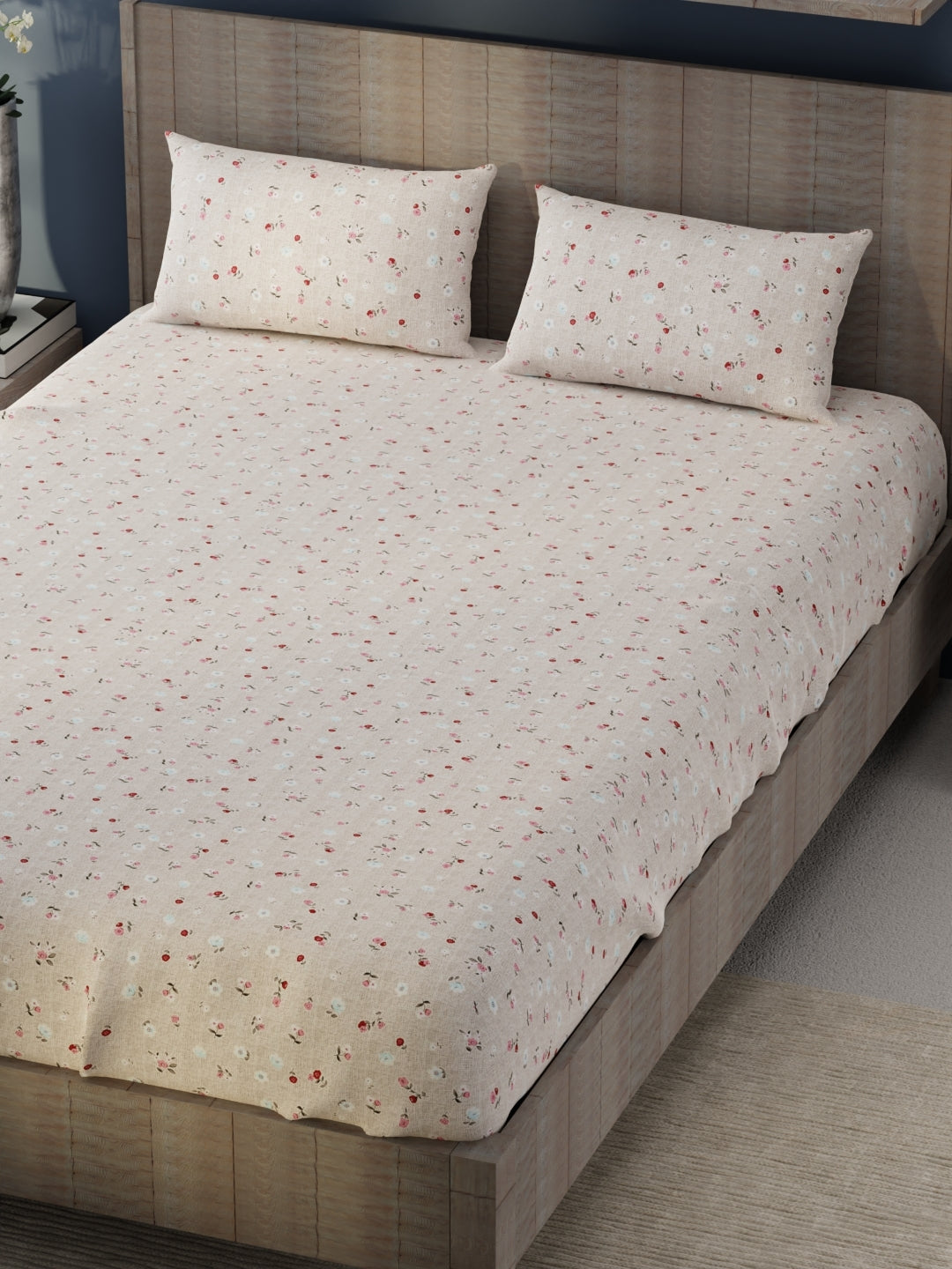 This bedsheet is treated with a brushed-peach finish for a softer feel. The fabric is heavy duty and features zero-color fading. Enhance the beauty of your bedroom interiors with this modern print. This set also comes with two matching pillow covers. It is easily machine washable, hence making its handling simple.