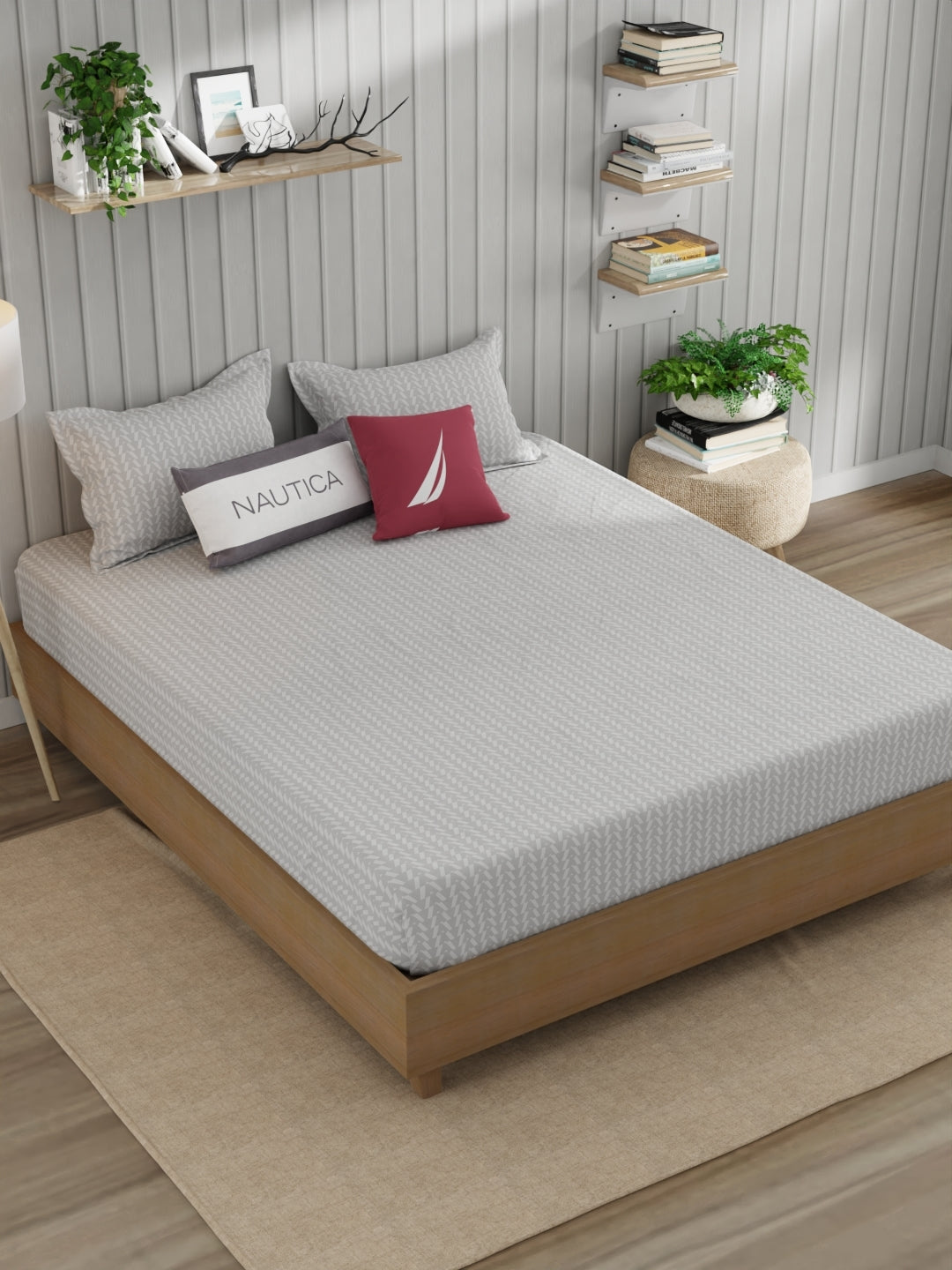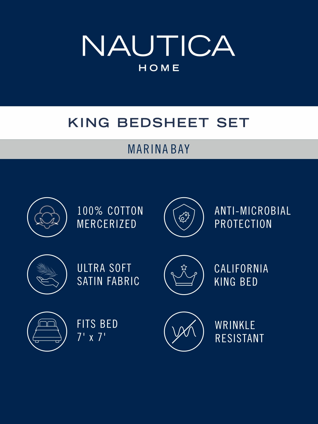 Nautica Marina Bay bedsheets give an elegant and luxurious look to your room. This super fine 100% Egyptian satin cotton bedding is ultra soft and comfortable. A high thread count of 250 TC satin weave gives shine and luster to the fabric. It is wrinkle resistant, and only skin-friendly colours have been used to make this beautiful bed linen. Anti-microbial finishing gives protection to you and your loved ones. These bedsheets retain their color for a very long time and do not fade away even after daily use. It features a quality stitch and will comfortably fit your mattress. This bedsheet gets softer with every wash. It's machine washable and easy to maintain.