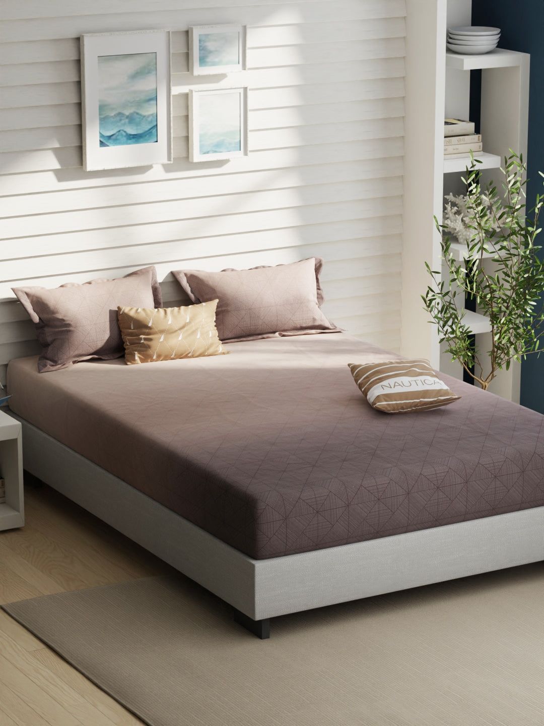 Nautica Fairwater bedsheets are trendsetters and can transform your space completely. These fashionable sheets are made from 100% premium cotton, which has an extra soft feel to it. With the high thread count of 160 TC, these bedsheets are very smooth and long-lasting. Only skin-friendly colours have been used to make this beautiful bed linen. Anti-microbial finishing gives protection to you and your loved ones. These bedsheets hold their color for a very long time and do not fade away even after daily use. It features a quality stitch and will comfortably fit your mattress. This bedsheet gets softer with every wash. It's machine washable and easy to maintain.