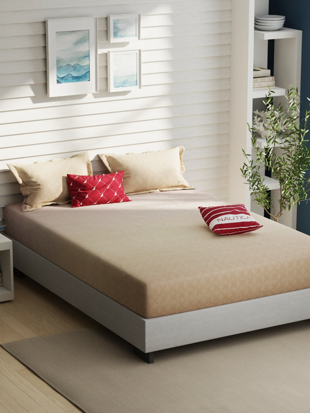 Nautica Fairwater bedsheets are trendsetters and can transform your space completely. These fashionable sheets are made from 100% premium cotton, which has an extra soft feel to it. With the high thread count of 160 TC, these bedsheets are very smooth and long-lasting. Only skin-friendly colours have been used to make this beautiful bed linen. Anti-microbial finishing gives protection to you and your loved ones. These bedsheets hold their color for a very long time and do not fade away even after daily use. It features a quality stitch and will comfortably fit your mattress. This bedsheet gets softer with every wash. It's machine washable and easy to maintain.