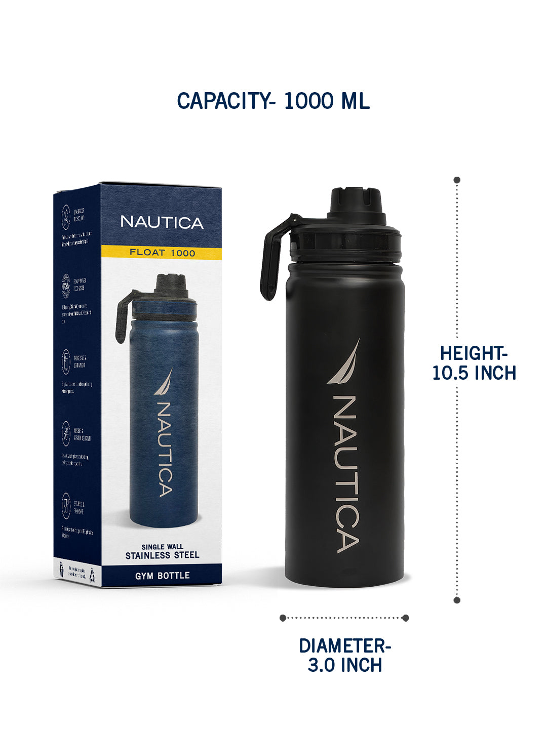 The Nautica Float Sleek Single-Layer Vacuum Bottle is designed for those who embrace life on the go. Combining contemporary style with practicality, this bottle is your ideal companion for everything from morning commutes to outdoor excursions. Crafted from premium stainless steel, the Nautica Float bottle features advanced triple-wall vacuum insulation to keep your beverages at the perfect temperature longer. Whether you prefer your drinks icy cold for up to 24 hours or piping hot for up to 24 hours, this bottle ensures you're prepared for any season or activity. Available in a range of stylish colors and sleek designs, the Float collection caters to diverse tastes. Whether it's for kids' school bags, staying hydrated at work, or keeping refreshed during workouts, its ergonomic design and leak-proof lid offer convenience and reliability. Beyond its functionality, the Float bottle is environmentally conscious, made from BPA-free materials to prioritize your health and sustainability. Its robust construction guarantees durability against daily use, while its easy-to-clean design simplifies maintenance.