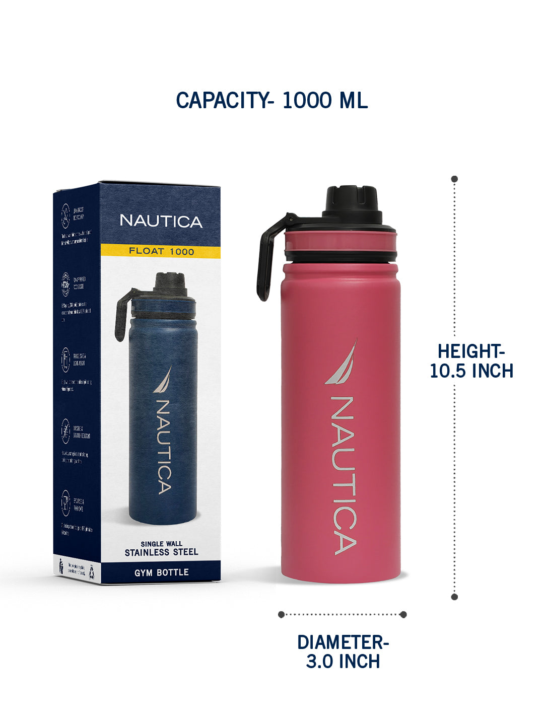 The Nautica Float Sleek Single-Layer Vacuum Bottle is designed for those who embrace life on the go. Combining contemporary style with practicality, this bottle is your ideal companion for everything from morning commutes to outdoor excursions. Crafted from premium stainless steel, the Nautica Float bottle features advanced triple-wall vacuum insulation to keep your beverages at the perfect temperature longer. Whether you prefer your drinks icy cold for up to 24 hours or piping hot for up to 24 hours, this bottle ensures you're prepared for any season or activity. Available in a range of stylish colors and sleek designs, the Float collection caters to diverse tastes. Whether it's for kids' school bags, staying hydrated at work, or keeping refreshed during workouts, its ergonomic design and leak-proof lid offer convenience and reliability. Beyond its functionality, the Float bottle is environmentally conscious, made from BPA-free materials to prioritize your health and sustainability. Its robust construction guarantees durability against daily use, while its easy-to-clean design simplifies maintenance.