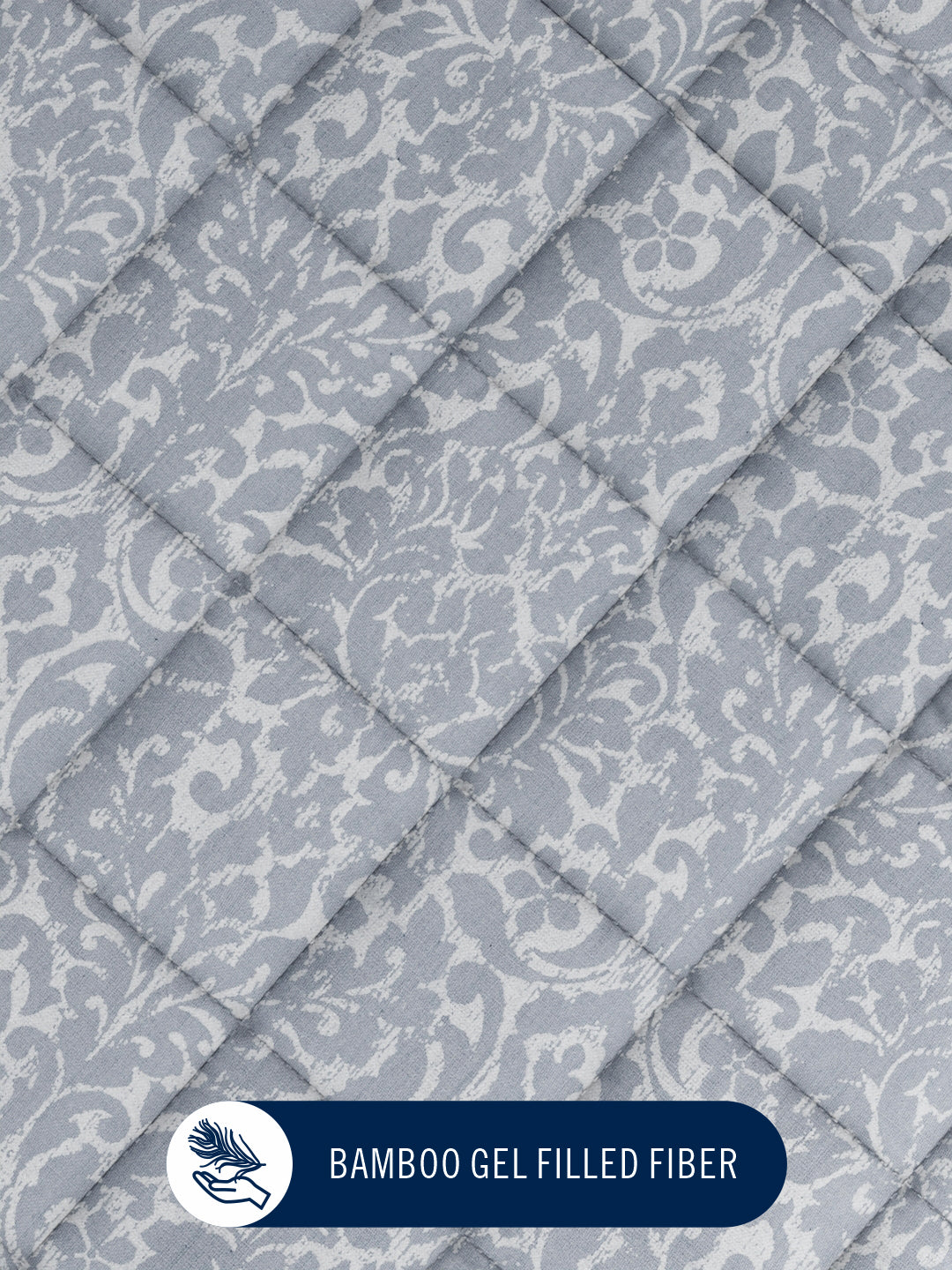 Nautica Marina Bay comforters give an elegant and luxurious look to your room. They are made with a bamboo gel fiber filling of 150 gsm, making them temperature controlled as per your body temperature. The outer shell is made of 100% Egyptian satin cotton fabric, which gives you a silky smooth feeling against your skin. It has a special antimicrobial finishing, which helps to keep you and your loved one safe. These comforters are suitable for use in AC rooms and in all seasons. It will keep you warm and cozy-feeling. They feature quality stitching and a beautiful quilted pattern. Elegant prints do not fade away even after daily use. This comforter gets softer with every wash. It's machine washable and easy to maintain.
